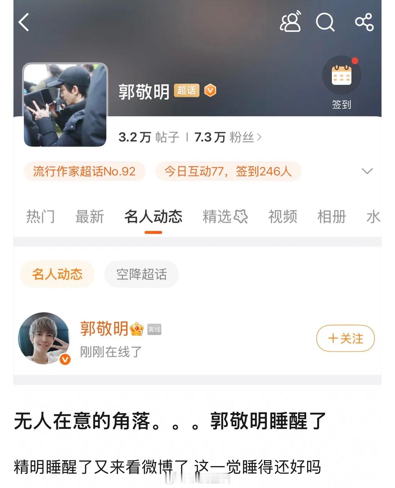 我觉得最好笑的事情是大家盯着郭敬明,半夜上线被催播月鳞琦纪,看到他刚刚上线调侃他睡醒了,问他睡得好吗。