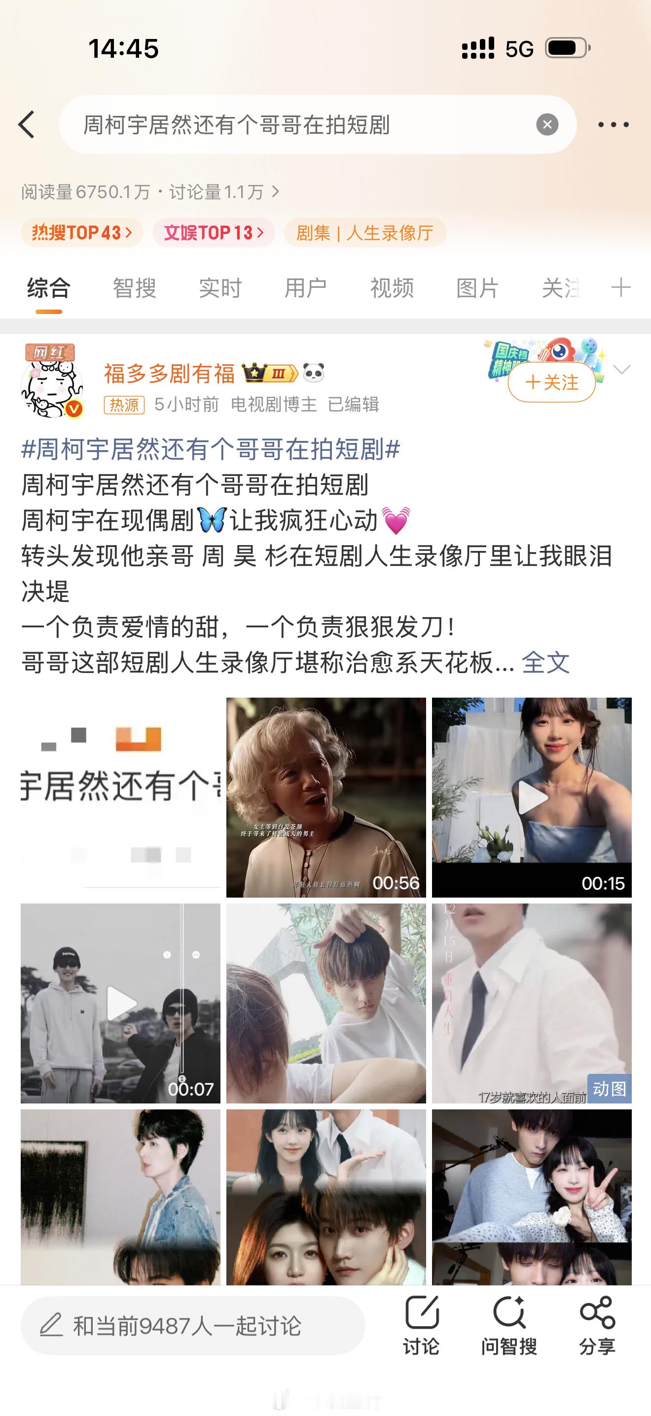 来看内娱明星的哥哥们,这两天都没少上热搜周柯宇哥哥在拍短剧,陈飞宇哥哥在搞制作
