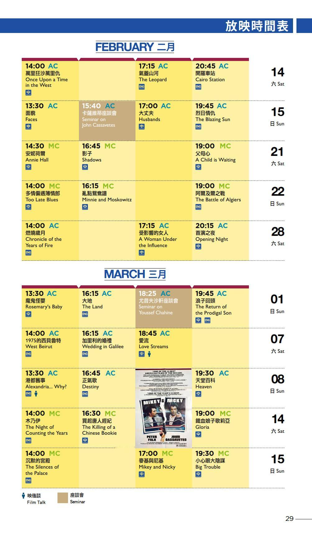 香港影讯 电影节发烧友明年1-3月节目单公布,集中放映美国独立电影之父约翰·卡萨韦蒂斯与埃及电影大师尤瑟夫·夏因的作品,12/19城市售票网开票(部分电影只有英字),明年朗豪坊GALA CINEMA也加入到放映影院中啦