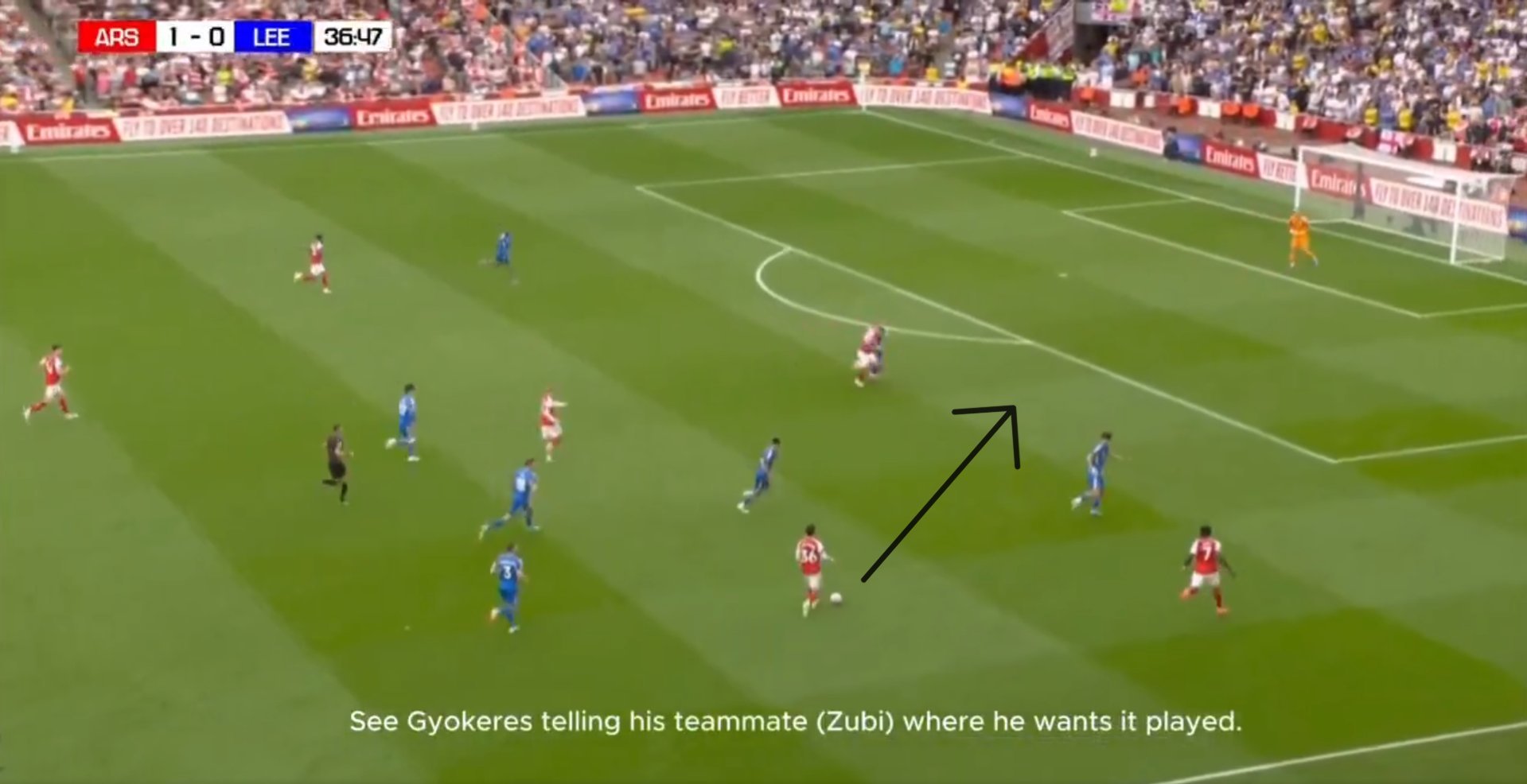 对哲凯赖什表现低迷的另一种看法:这就是阿尔特塔所说的,我们的中场球员必须适应哲凯赖什。我们每场比赛都会遇到很多类似的情况。目前队内除了特罗萨德之外,几乎没人会选择这样的传球。即使在图中,最终苏比门迪也选择放慢速度,把球传给了厄德高。