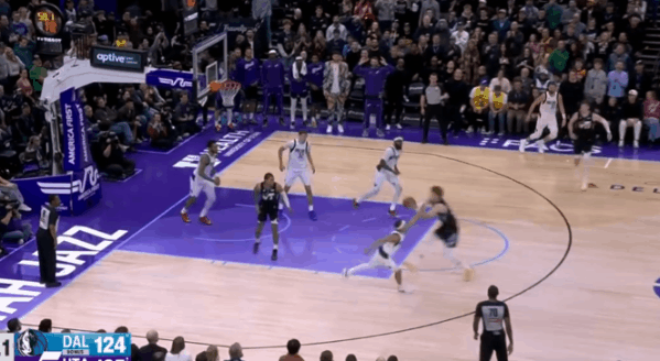 马卡观察:对阵独行侠33+16,三分手感不佳仍能砍33分图1早期进攻为贝利设置“下掩护”(Pin Down),贝利接球后顺势衔接突破吸引两人防守,随后回给后拆至底角的马卡。图2和乔治的边路挡拆配合换走PJ后肘区背身拿球,挤占中路空间后立即衔接炸球撤步后仰中投。图3借助克利尔设置的“下掩护”(Pin Down)“卷切”(Curl)篮下,接球后炸球的同时沉肩强对抗直接撞飞执行“剥离换防”(Peel Switch)的哈迪,随后顶着起飞协防的PJ打进2+1。图4接森萨博手递手启动右路突破,行进间合球的同时沉肩主动寻求对抗,随即衔接慢三步顶着PJ一路”碾“到篮下后上篮得手。图5借助李凯尔的“Away Screen”卷切篮下,接球后下球突破,利用侧身沉肩支肘主动寻求对抗+向前突破的惯性直接撞飞回退篮下护框的西塞,随即衔接背转身寻找终结角度,顶着两人协防上篮打进。图6背身接球后转面框三威胁后启动右路突破,没能摆脱克里斯蒂被逼至边角,炸球撤步后仰中投硬解,顶着两人防守命中关键进球。图7克利尔突分底角科迪,克莱前去扑防,PJ前往篮下和菲利卡位漏掉马卡,马卡立即冲向篮下起跳补扣得手。最后欣赏一下这记传球:图8保护下篮板后直接四分卫长传甩给最前线的克利尔。NBA