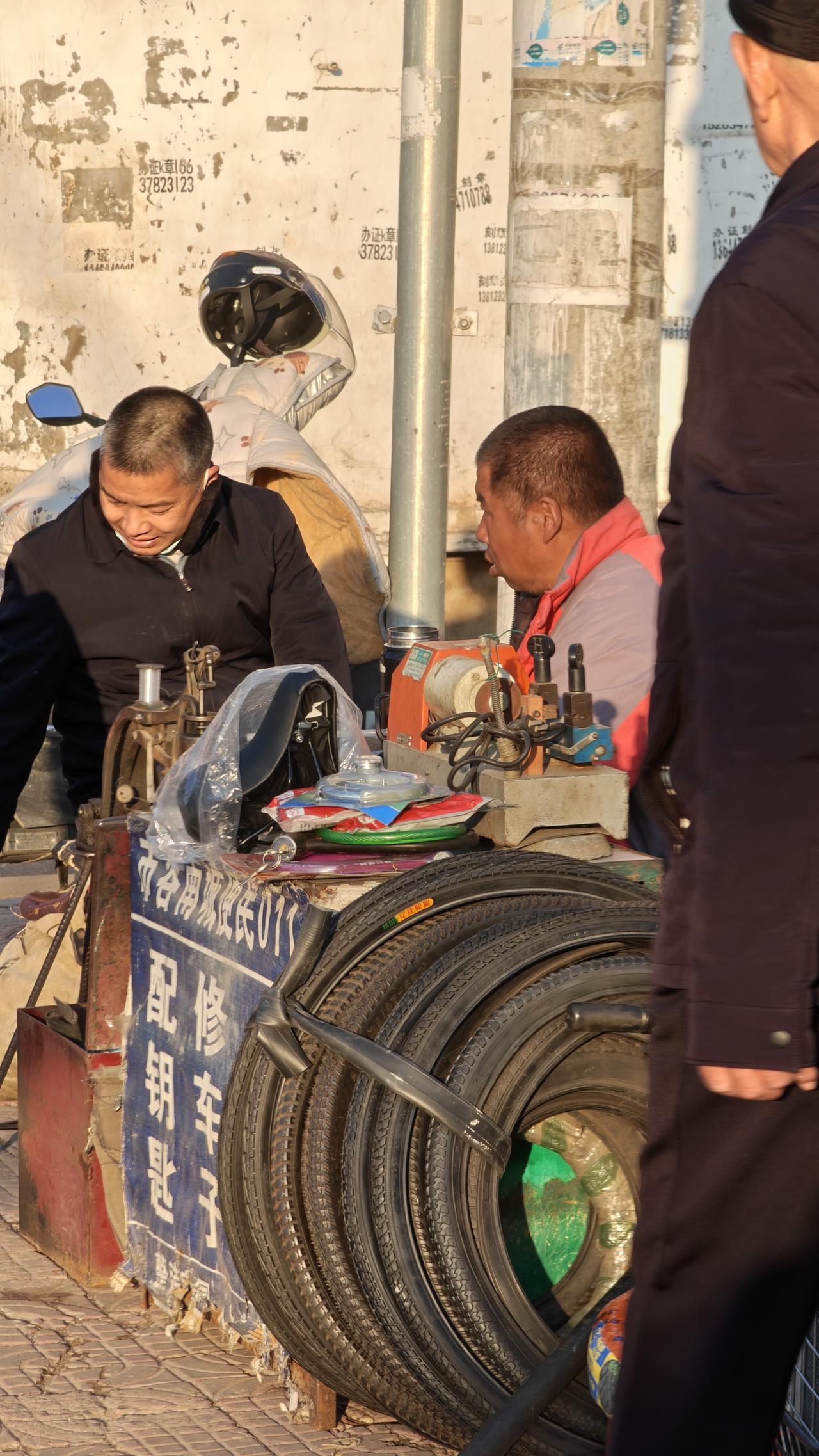 今天,我就是活久见! 流,见了 氓,见了, 流氓,更见了! 先是路过一个路口,一堆无业游民等着找活干,再马路口围起来玩扑克牌。我感觉我一下子跨越回到古代了。 再路过一个街边,看见配钥匙修车子。图一 又看见另一个摊点修锁修车修鞋修拉链,暂时没人。图二 最后一个地,突然穿回了现代,遇见了流氓。一个女环卫工,正在打扫卫生。可能是脑子有点瑕疵,一个街边的流氓搭手上去,调戏,愚弄,戏谑!女环卫工目光有点麻木。唉……图三四五六 “流”和“氓”在古代汉语中分别指代不同社会群体。 “流”指失去土地和房产的流民。 “氓”指没有固定职业的无业者‌。 “流氓”,现在含义逐渐演变为指代不务正业、品行恶劣之人。‌‌ 干过这活的人 活久见 环卫工 修车