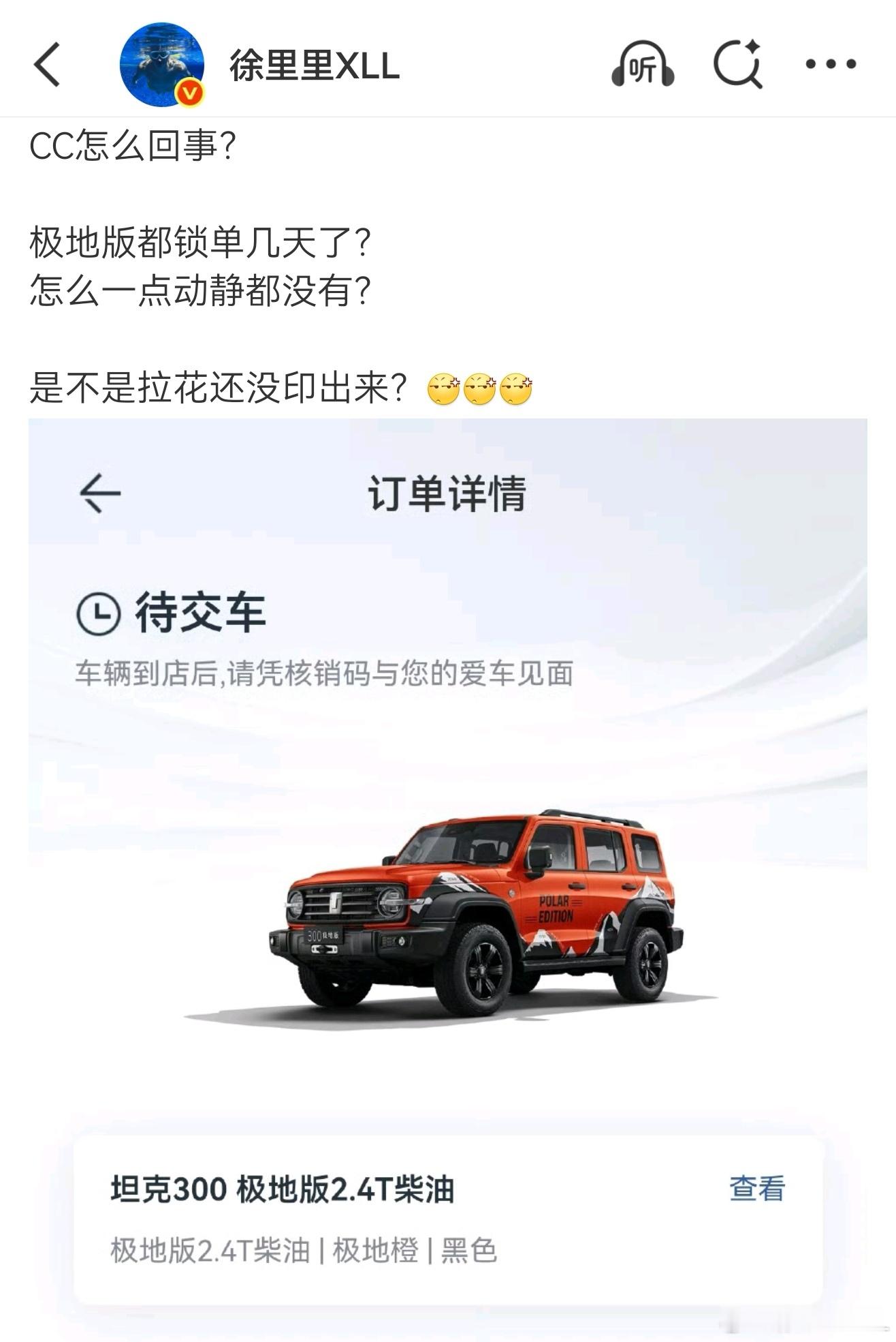 今天再给CC道个歉吧,一个月内第二次给CC道歉了。昨天我不是发了个微博吗?说这个极地版都锁单这么久了,怎么一点动静都没有。其实我就是开个玩笑。我知道极地版这个车是限量车型,有的小功能都是新增加、新调试的。比如前挡风加热、玻璃水喷嘴加热。极地版为了应对严寒,许多电气化的东西是不是也要跟着加强?这些东西看起来简单,但是落实到产线上,就是个大工程。我也不着急用车,真的就只是调侃一下...结果CC的相关领导今早马上就给我留言了。然后通过中间人要到了我的电话,给我打电话聊了好久。CC有个很独特的气质,在其它车企里面都没有。那就是他们的基层工作人员和各个级别的领导都非常的耿直和真诚。耿直到我一句充满善意的调侃,他们都觉得我是不是在骂他们,是不是不开心了...真的只是调侃,我可以对着柴油发誓。如果我有半点儿虚情假意说谎的地方,就让我此生永远都没有大排量柴油车开!我以后尽量少调侃CC,少给领导添麻烦。