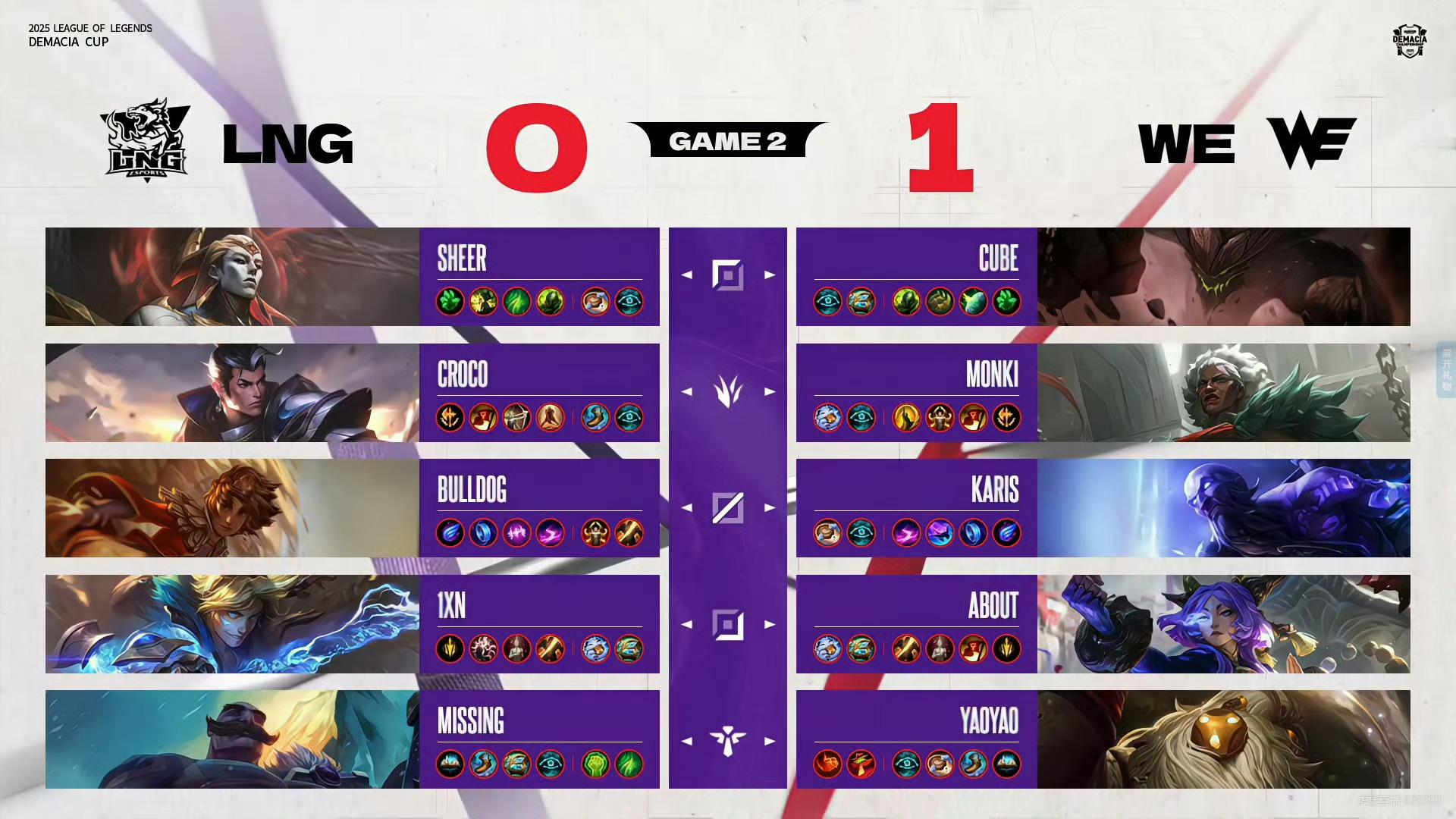【2025德玛西亚杯丨赛事BP】we对战lng 丨第二局,阵容如下:
