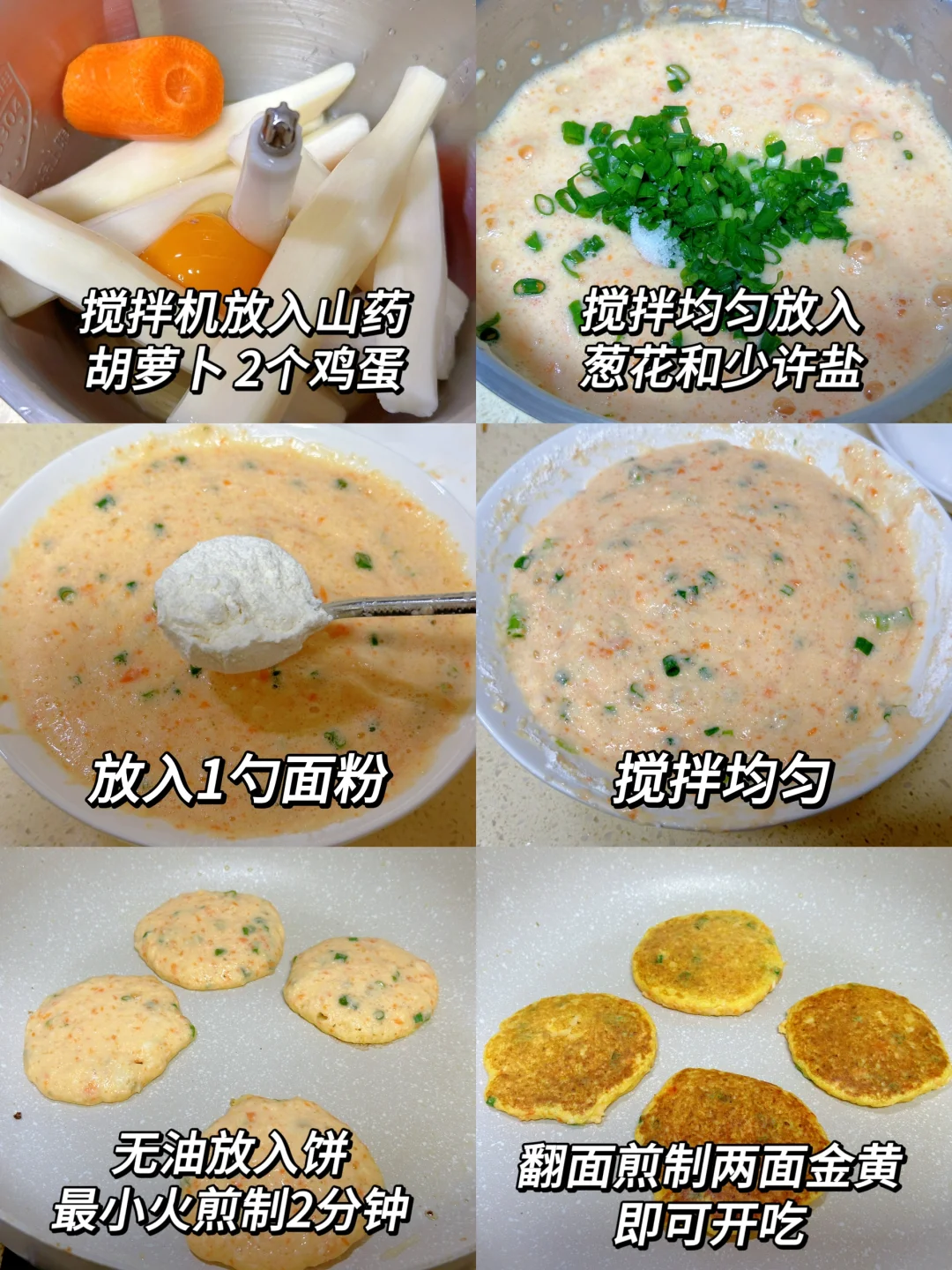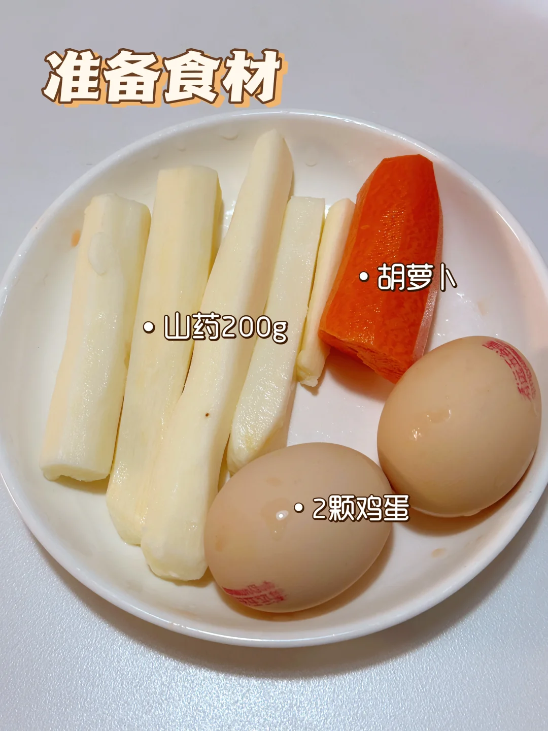 🥗食材:山药、鸡蛋2个、胡萝卜、葱花