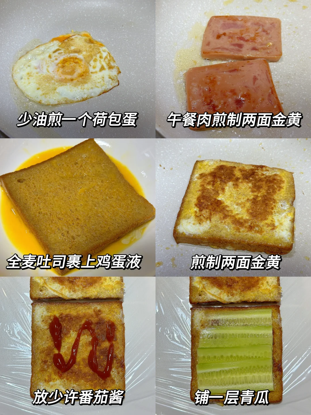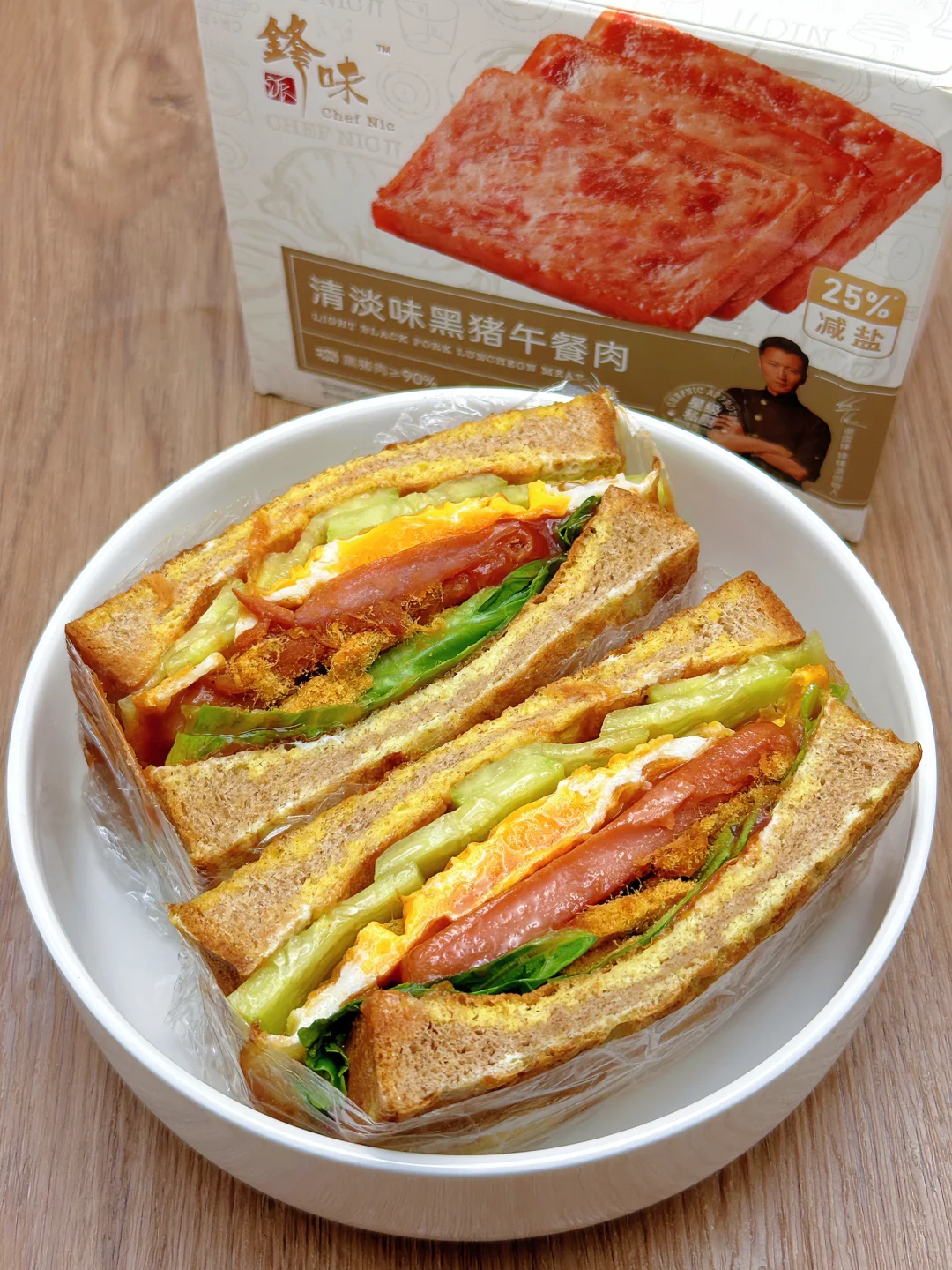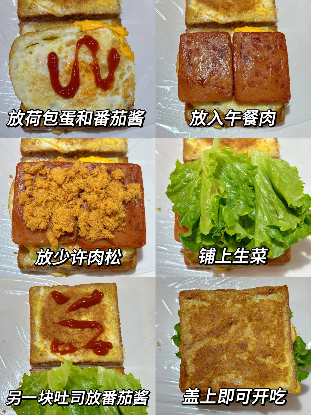 低卡低脂减脂餐,这款三明治这可真是掉称神器!姐妹们,我不会是最后知道的吧[哇R][哇R][哇R]感谢网友,看到这个就立刻试了试,果然不错耶!配上含肉量满满的锋味派午餐肉,而且饱腹感很强,吃半块就撑了[捂脸R][捂脸R][捂脸R]早餐午餐都不错呀,单片午餐肉煎一煎夹三明治里,做法简单不翻车,姐妹们快去试试吧~ 🥗食材:全麦吐司、黄瓜、鸡蛋、午餐肉、肉松、生菜,搭配番茄酱(姐妹如果不喜欢番茄味可以换成沙拉等等) 🥘做法:如图所示~(姐妹们,先煎鸡蛋,然后就不用放油了,可以煎完午餐肉和哪吐司) 我这次用的是锋味派午餐肉,配方干净,黑猪肉含量90%以上,姐妹们如果要做午餐肉的减脂餐,一定要选肉含量高的,配方干净的哟,他们家都是便携片装,饿了可以随时撕开吃,而且肉粒看得见,这样也吃的放心些哟! 这个做完就算中午吃一个热量也不会超,而且真的巨巨巨好吃!!答应我,一定要试试!!!