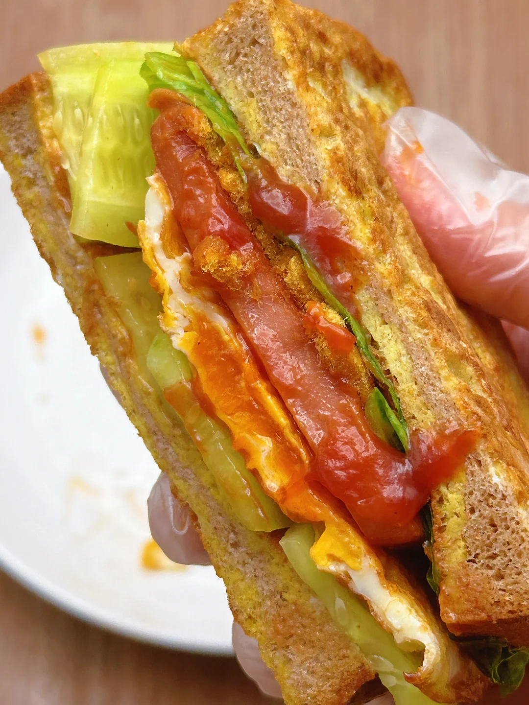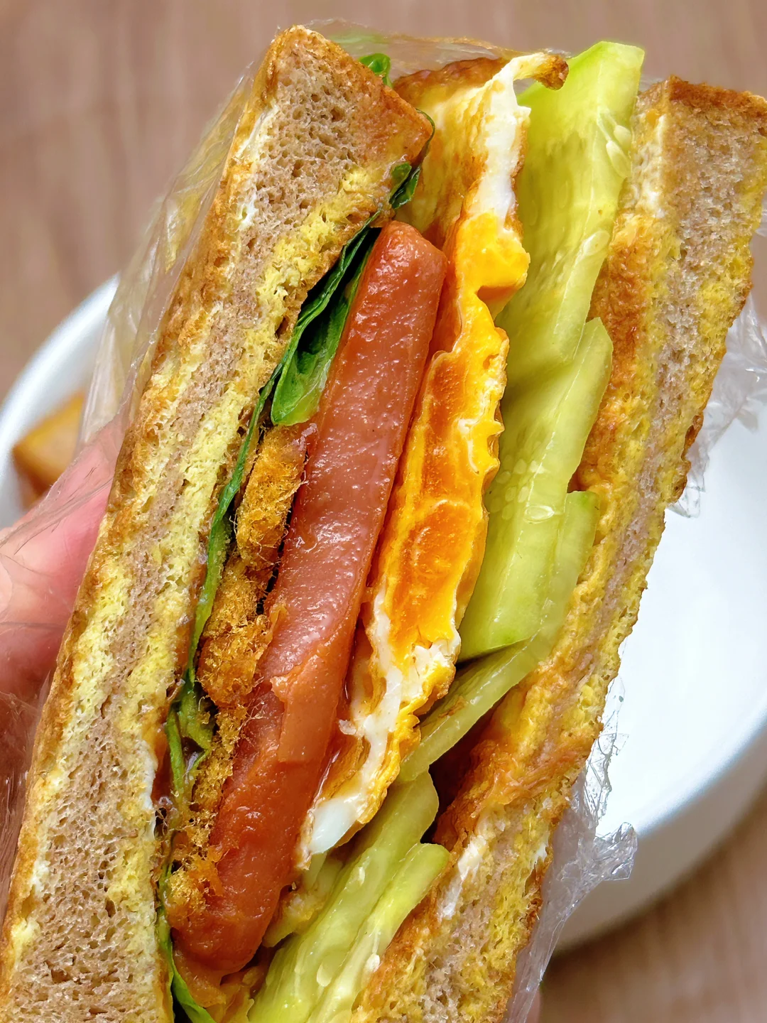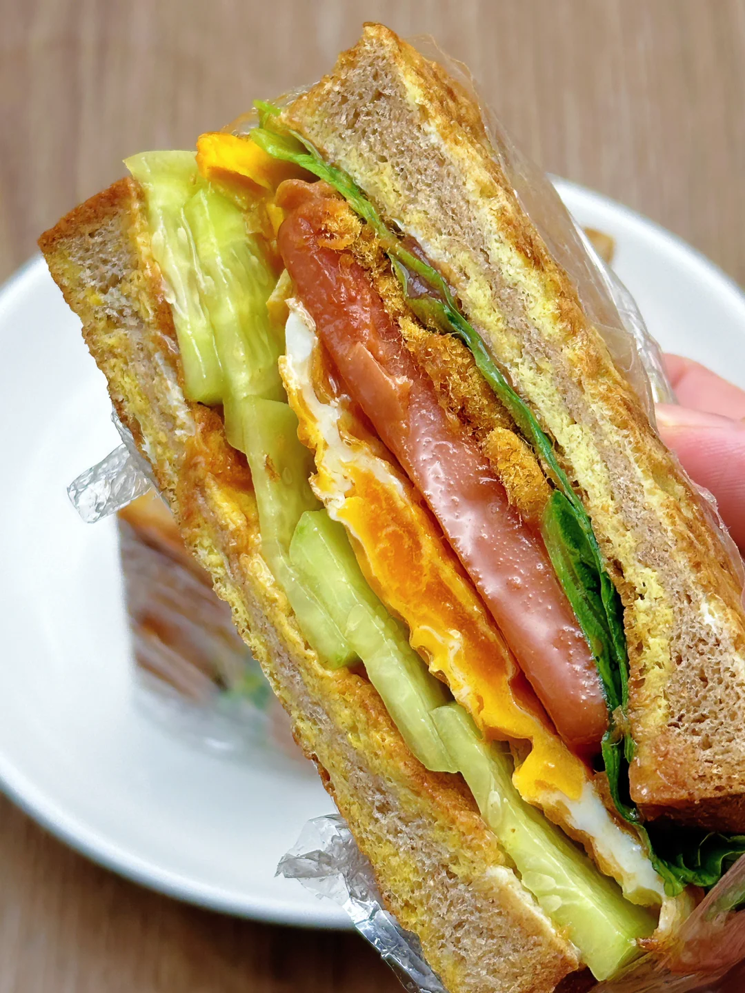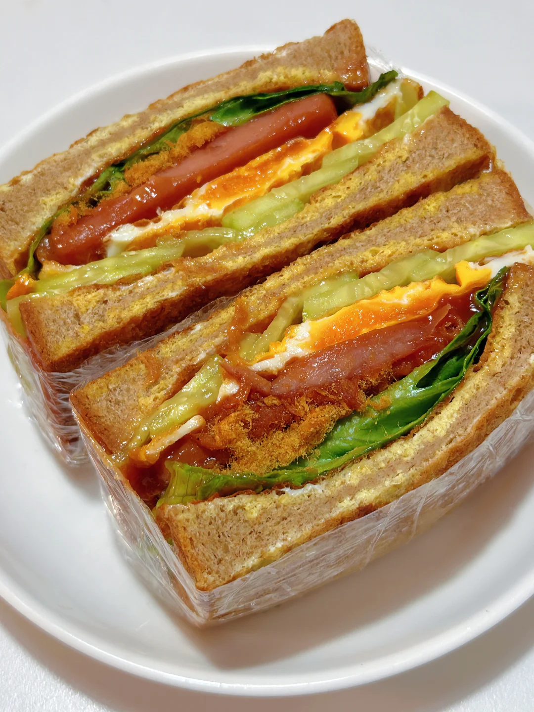 低卡低脂减脂餐,这款三明治这可真是掉称神器!姐妹们,我不会是最后知道的吧[哇R][哇R][哇R]感谢网友,看到这个就立刻试了试,果然不错耶!配上含肉量满满的锋味派午餐肉,而且饱腹感很强,吃半块就撑了[捂脸R][捂脸R][捂脸R]早餐午餐都不错呀,单片午餐肉煎一煎夹三明治里,做法简单不翻车,姐妹们快去试试吧~ 🥗食材:全麦吐司、黄瓜、鸡蛋、午餐肉、肉松、生菜,搭配番茄酱(姐妹如果不喜欢番茄味可以换成沙拉等等) 🥘做法:如图所示~(姐妹们,先煎鸡蛋,然后就不用放油了,可以煎完午餐肉和哪吐司) 我这次用的是锋味派午餐肉,配方干净,黑猪肉含量90%以上,姐妹们如果要做午餐肉的减脂餐,一定要选肉含量高的,配方干净的哟,他们家都是便携片装,饿了可以随时撕开吃,而且肉粒看得见,这样也吃的放心些哟! 这个做完就算中午吃一个热量也不会超,而且真的巨巨巨好吃!!答应我,一定要试试!!!