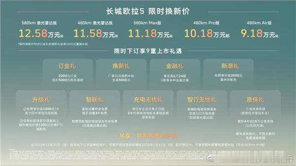 【智能汽车每日要闻】- 北汽蓝谷极狐L3级自动驾驶轿车获准入许可- 问界M9连续四月保值率第一- 福特暂停电动车型生产- 长城欧拉5上市⭐️ 北汽蓝谷极狐L3级自动驾驶轿车获准入许可12月17日,北汽蓝谷新能源科技股份有限公司宣布,其极狐牌BJ7001A61NBEV型纯电动轿车已获得工信部L3级有条件自动驾驶车型产品准入许可,最高车速可达80km/h。北汽蓝谷表示,公司已率先完成所有准入程序并获得许可,尽管测试牌照为临时性质,仅供上路测试使用,但公司作为首批通过L3级自动驾驶车型准入许可的企业,已进入可上市销售和上路通行的阶段。极狐阿尔法S(L3版)搭载了包括3颗激光雷达在内的34颗高性能传感器,实现了360度全方位的环境感知覆盖。该车型借鉴航空领域的安全设计理念,实现了全链路安全冗余备份,即便在极端情况下,某个单一系统偶发失效,冗余系统能够迅速提供备份,确保车辆失效情况下的基本安全,为驾乘人员提供安全保障。北汽蓝谷⭐️ 问界M9连续四月保值率第一近日,中国汽车流通协会发布的《2025年11月中国汽车保值率研究报告》显示,问界M9连续四个月成为中国插电混动(含增程)车型保值率第一。问界M9的销量和口碑同样出色,累计交付量突破26万辆,稳居50万以上销量第一。智能化方面,问界M9搭载华为乾崑智驾ADS4,构建全维立体融合感知系统,保障用户在复杂环境下的行车安全。问界M9⭐️ 福特暂停电动车型生产,LG新能源457亿电池合同部分解除12月17日,LG新能源与福特汽车解除了价值约457亿元人民币的电动汽车电池供应合同。该合同原定于2024年10月签订,涉及LG新能源向福特供应总计109GWh的电池电芯和模组,计划从波兰工厂生产并供应给福特的电动汽车。福特汽车最近全面修改了其电动汽车战略,将业务结构重组为以汽油车和混合动力车为中心,并停止了下一代电动卡车和电动商用货车的开发。LG新能源相关人士表示,由于福特汽车的电动化战略变更,特定车型的开发被中止,导致部分供应合同被解除,但双方的长期合作关系将得以维持。福特汽车也调整了与SK On的合作。福特⭐️ 长城欧拉5上市:11万级纯电SUV搭载激光雷达长城欧拉品牌近日迎来了全新SUV车型——欧拉5的正式上市,起售价为9.18万元。欧拉5在设计上采用传统门把手,以提高实用性和安全性。同时,新车没有采用一体化压铸技术,而是注重降低全生命周期拥车成本。欧拉5纯电版本车内配备了10.25英寸液晶仪表和15.6英寸中控大屏,搭载了长城咖啡智能最新的CoffeeOS3系统。辅助驾驶方面,欧拉5配备了长城第三代CoffeePilotUltra辅助驾驶系统,具备城市NOA功能,包括红绿灯识别、智能变道等复杂城市场景应对能力。长城汽车