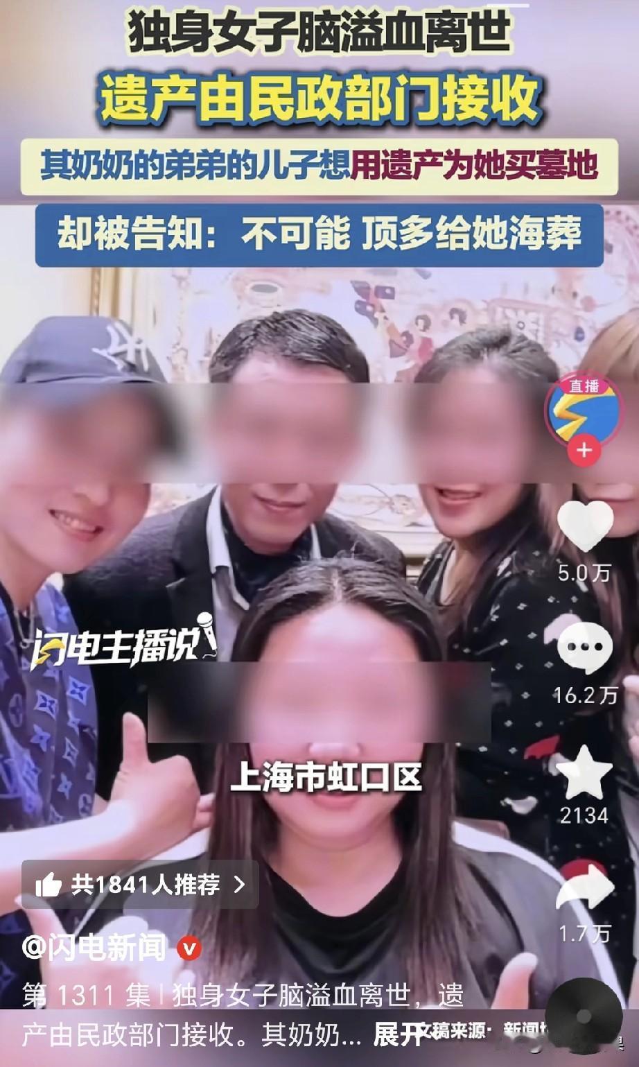 这种情况这种的做法是不是太离谱了,独身女子患病身亡她的亲属应该有权利料理后事吧。 亲属要求用遗产买墓地安葬,这种正常不过的要求,为什么被拒绝,入土为安这句话是个人都懂吧。为什么要进行海葬,海葬又是个什么鬼,是不是可以理解为,直接丢到海里,灰飞烟灭。 她只是一名很普通的女子,为什么为她想的那么周到,还要给她进行海葬,有没有准备搞个仪式呢! 真的太荒唐。