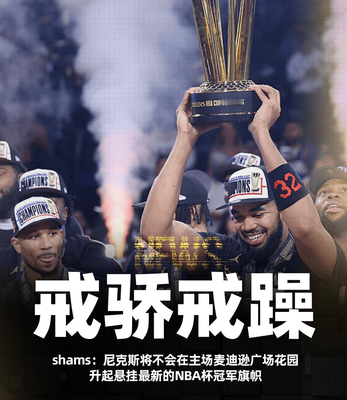 尼克斯队宣布主场不会升起NBA杯总冠军旗帜…… 湖人、雄鹿队夺冠之后都在主场挂上了,尼克斯为何要反其道而行之? 因为尼克斯看不上啊,尼克斯队现在的目标是总冠军……尼克斯现在有这个底气。 连续5个赛季打入季后赛,上赛季止步东决,本赛季保持了高歌猛进的势头,目前球队战绩高居东部第二。 本赛季尼克斯不仅把主帅换成了总冠军教头迈克布朗,球队阵容方面也更完整。布伦森持续打出了超巨水准,唐斯、OG、布里奇斯、哈特等主力球员继续保持高水准竞技状态,球队还签入了超级第六人克拉克森。 球队士气高昂,团队气氛融洽、球员阵容齐整。 本赛季这支尼克斯队未必不能冲顶夺冠,大家觉得呢?