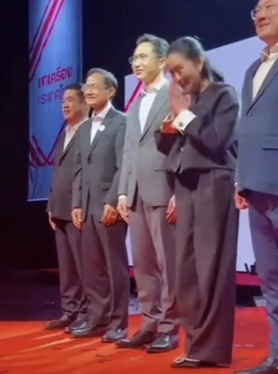 近日,佩通坦参加2026年泰国候选人竞选总理启动仪式:别的不说,她依旧获得了现场为泰党成员的热烈欢迎。 她从入座到登台,不住地向现场人员点头致意,礼貌有加。即使当总理时,她也是把自己作为最普通的一员,彬彬有礼。 现场佩通坦,依然美丽,时尚。卡起的披肩发,时尚的黑色套服,站姿优雅。面带微笑的面庞透露着亲和,乐观,自信。 她说过,淡出政治,但是,总理期间的从政已习以为常了。为泰党重大活动,她还是精神领袖,除去三位候选人,她依然c位,可见,她的影响力依然还在。祝美女一切顺顺利利!