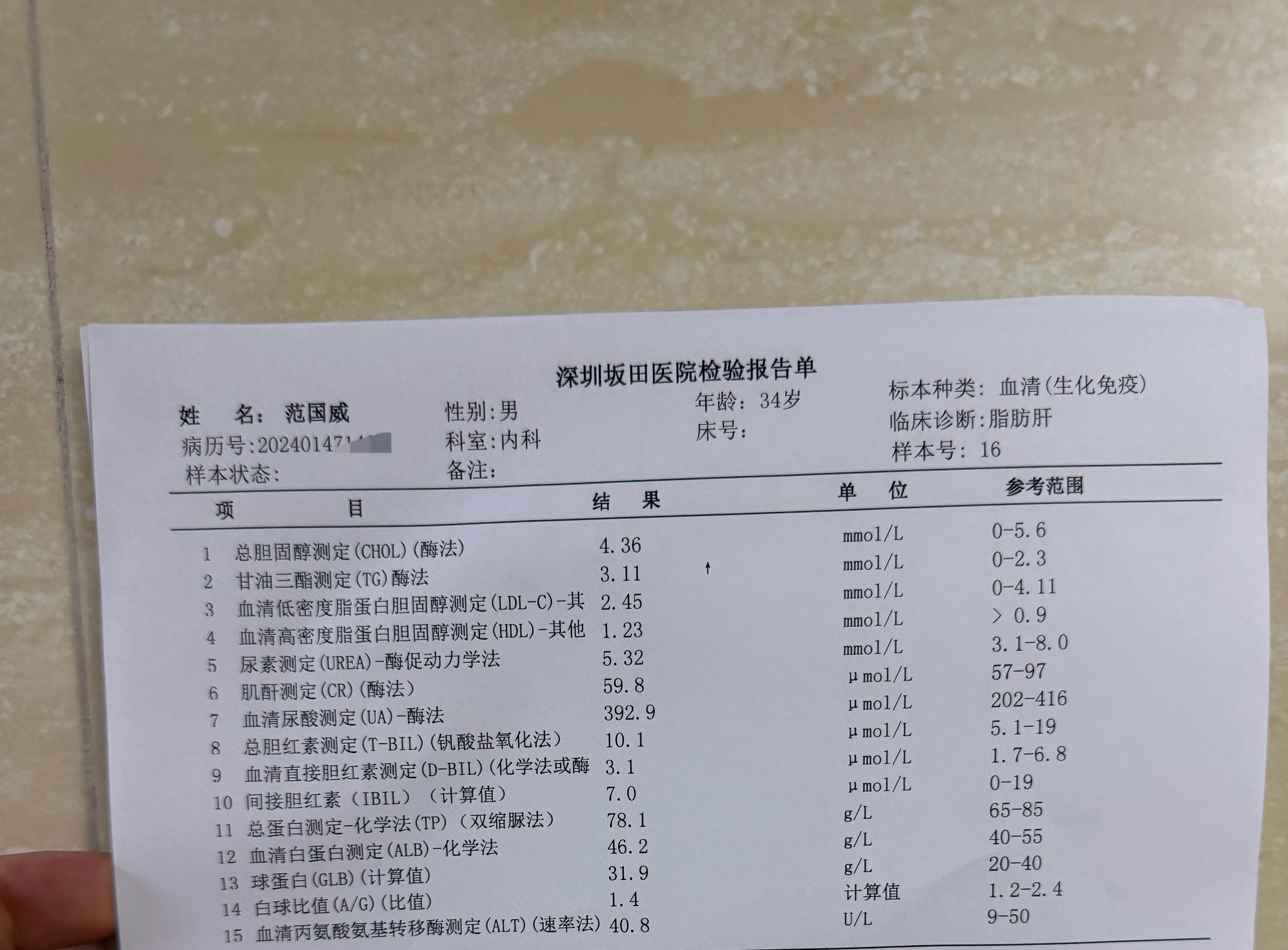 手机AI可以看医院检查单吗,或者有没有行医的粉丝,半年前检查有脂肪肝,帮我看下有没有好转