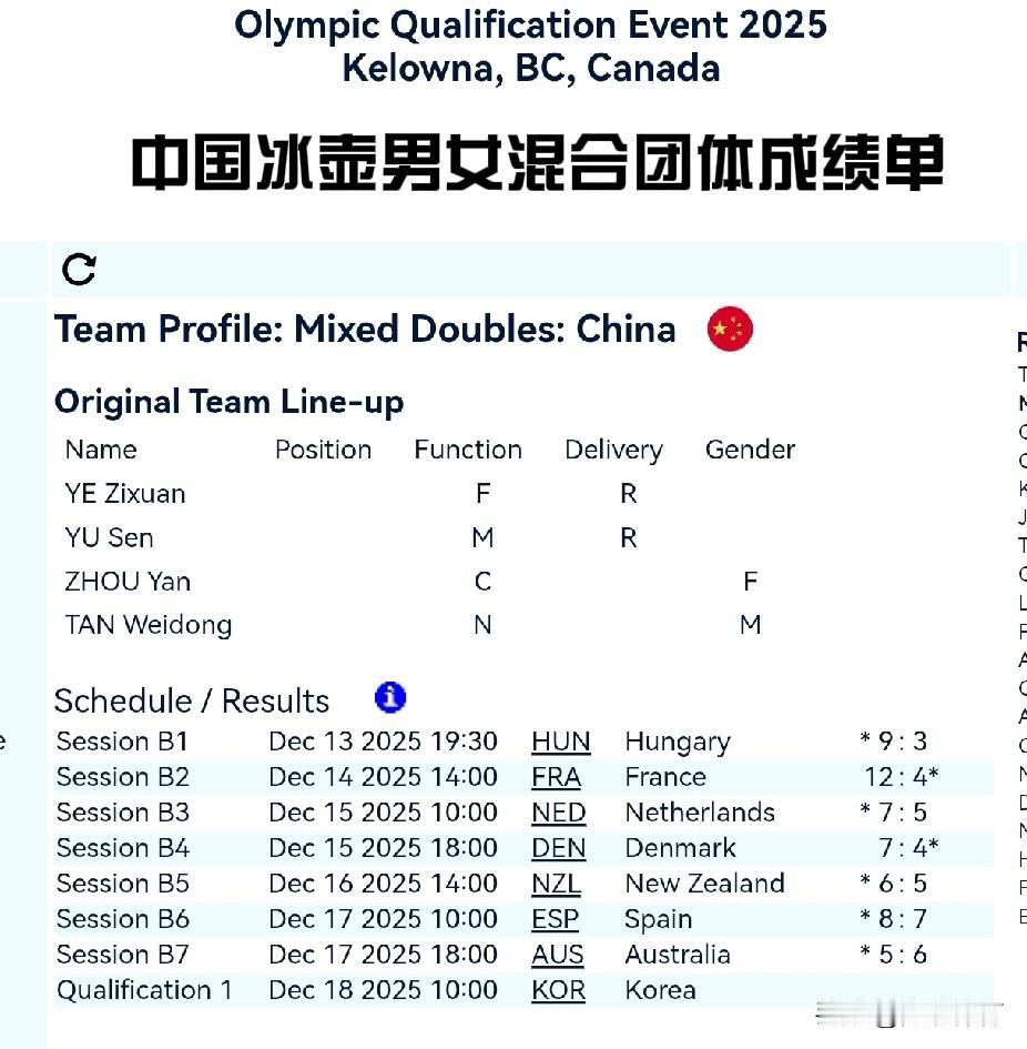 中国队距离晋级2026冬奥会冰壶混双比赛还差两场胜利 本日,中国冰壶混合团体在落选赛中以5-6负于澳大利亚队,在B组名列第二。 获得A组头两名的是捷克和韩国。 这样,中国队要想取得2026年冬奥运资格必须先战胜A组第二韩国,再战胜捷克🇨🇿与澳大利亚的胜者才能搭上进军米兰的末班车。