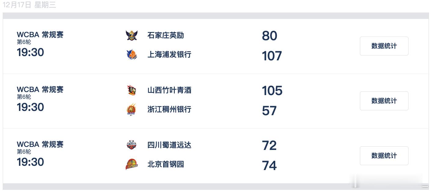 【WCBA今日综述:上海山西得分破百获大胜 北京女篮险胜四川】2025-2026赛季WCBA常规赛今日精彩继续,今日3场比赛在A组进行,其中上海女篮和山西女篮均大比分战胜对手,四川女篮和北京女篮直到最后一刻才分出胜负,北京女篮险胜。B组也有1场比赛,合肥文旅成功复仇厦门银行。探营wcba球队 【A组】 石家庄英励 80-107上海浦发银行,上海女篮四人得分上双,卡特31分8篮板,伍湘琳20分,赫伯德17分16篮板,徐娜11分。河北女篮三人得分上双,双外援波特和戴维斯各得18分,彭晓彤14分7助攻。 山西竹叶青酒 105-57 浙江稠州银行,山西女篮三人得分上双,翟若云和布拉德福德各得19分,林育庭13分。浙江女篮仅两人得分上双,孙凤艺17分,万济圆10分。 四川蜀道远达 72-74北京首钢园,北京女篮三人得分上双,詹姆斯20分12篮板,郑茗12分,米切尔10分。四川女篮四人得分上双,霍华德17分,唐子婷14分,高颂11分,希尔斯曼10分7篮板。 【B组】 厦门银行 58-78 合肥文旅,合肥文旅双外援得分上双,纳雷德28分6篮板,约翰逊13分5篮板。厦门银行两人得分上双,谢泼德24分,彭诗晴14分10篮板。