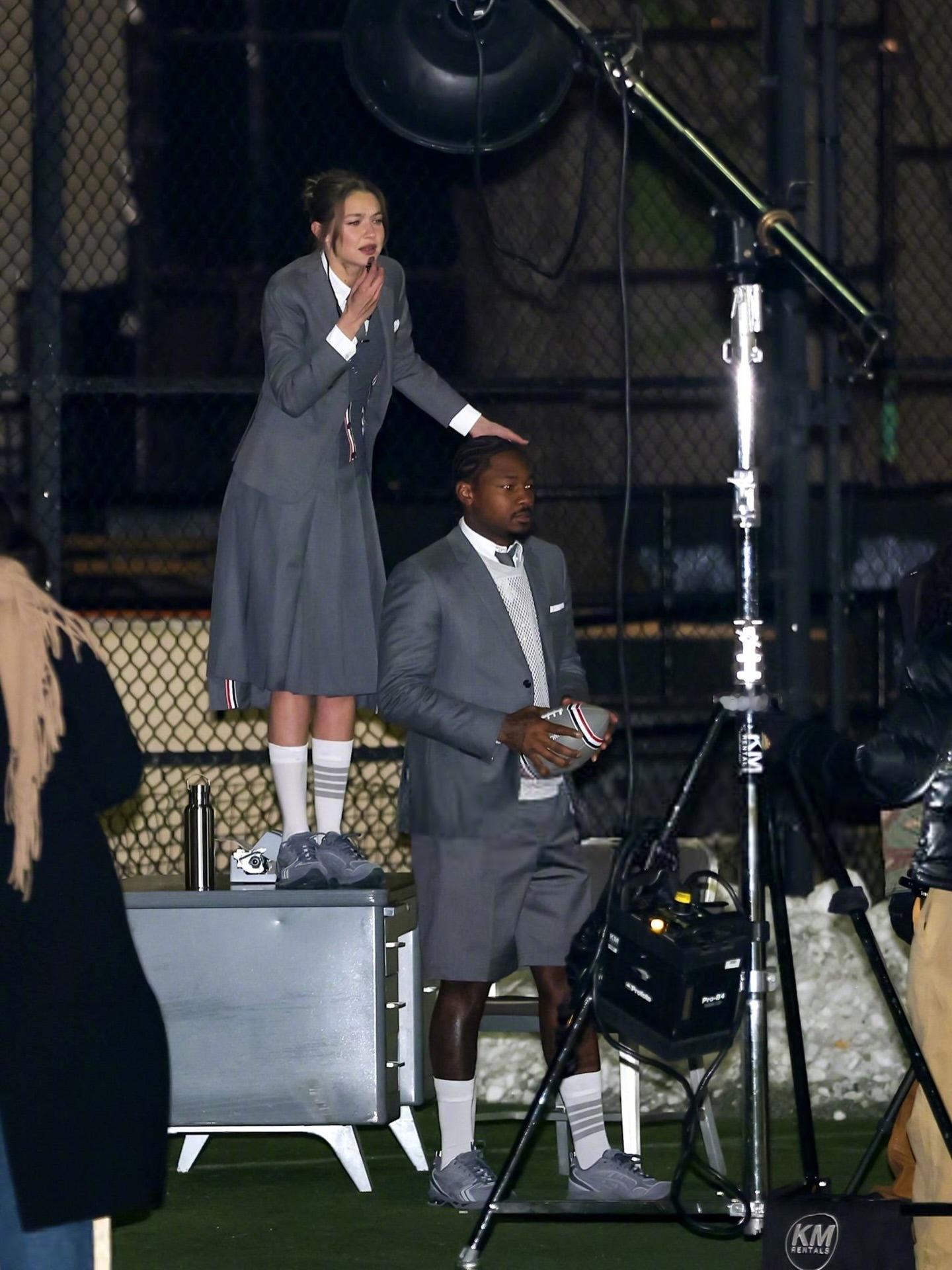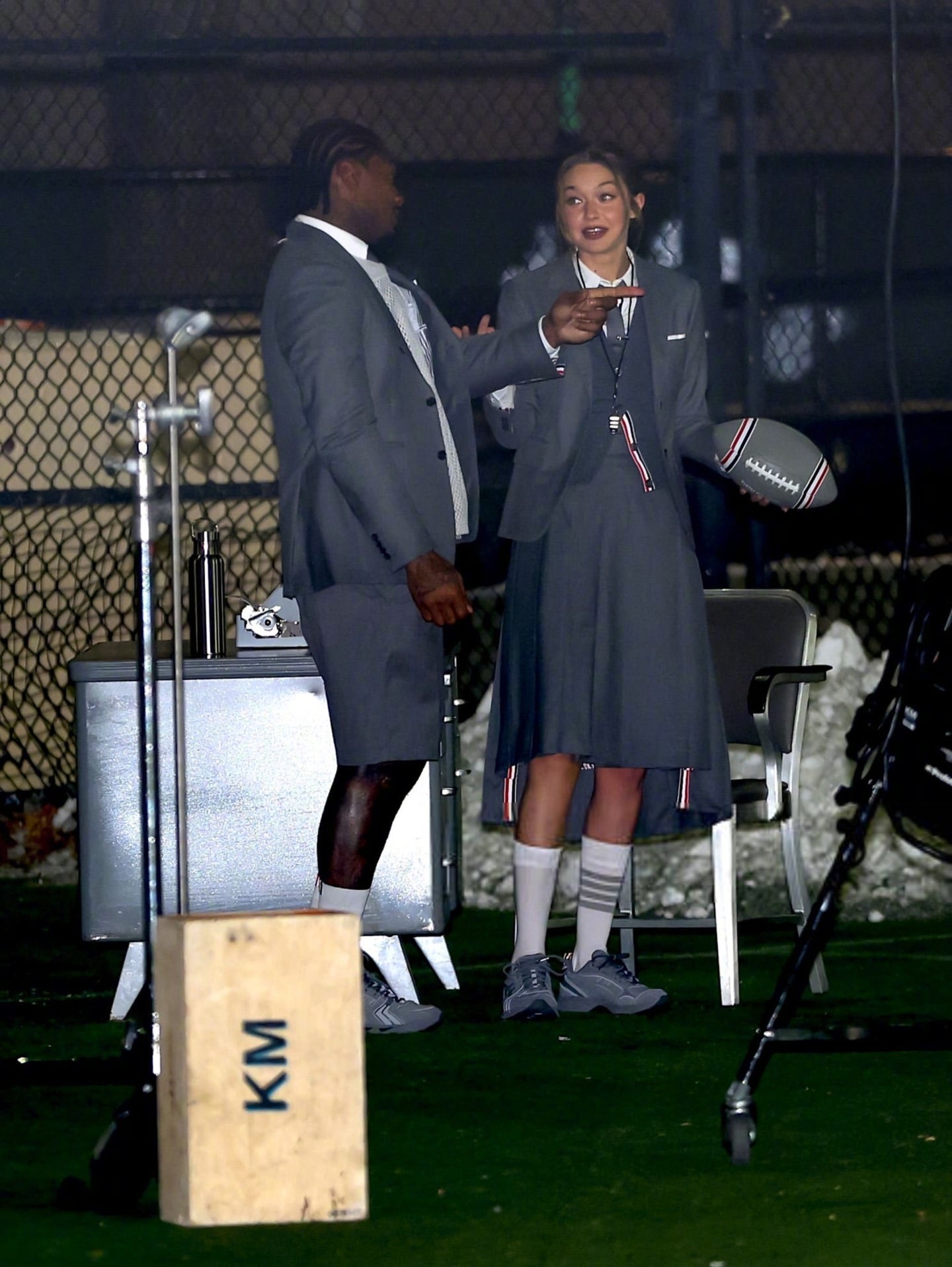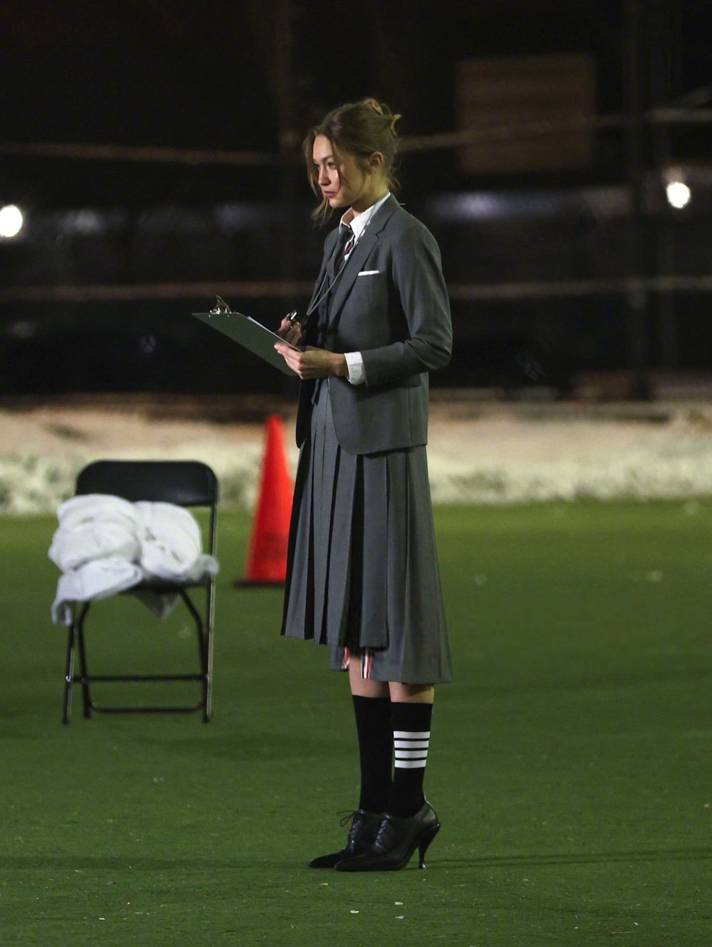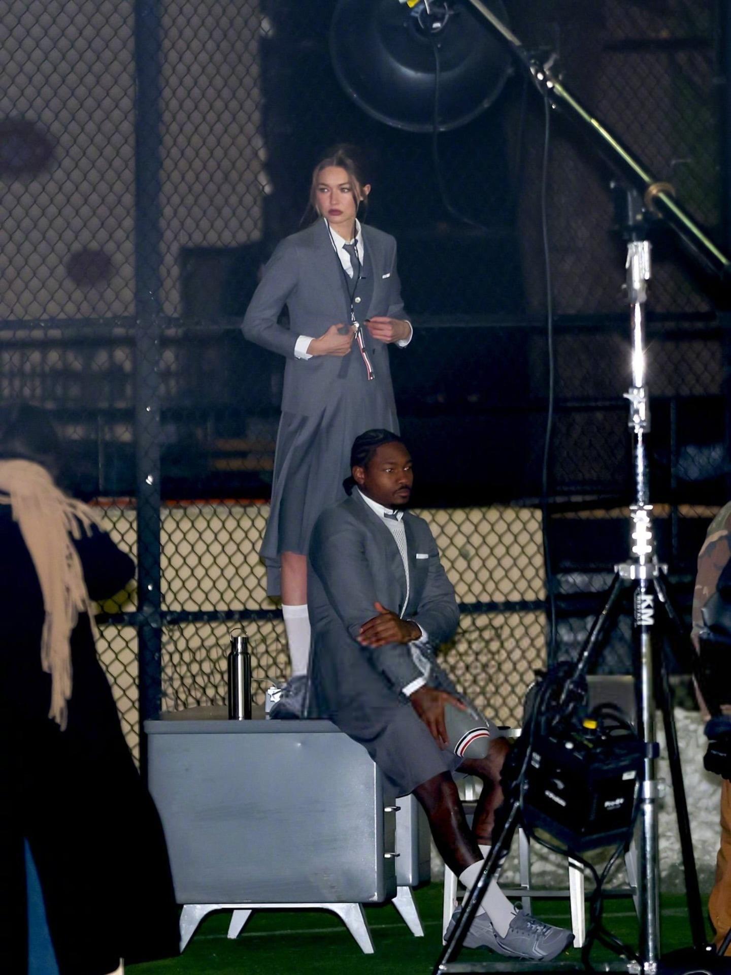 昨天,Gigi Hadid 现身纽约为 GQ Bowl x Thom Browne 拍摄广告大片。刚下过大雪❄️的纽约,冻得脸都红了!