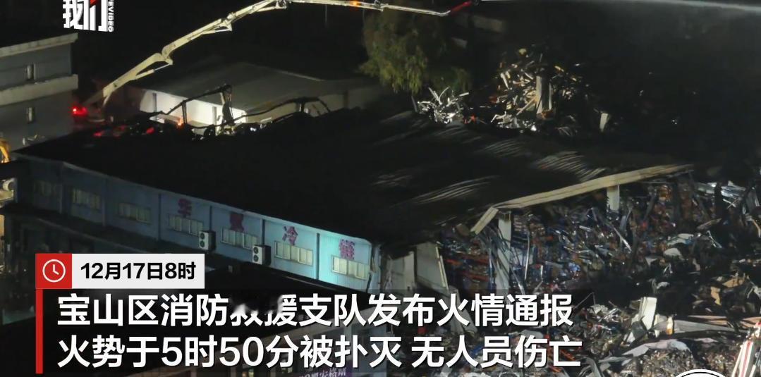 上海宝山一冷链厂凌晨发生火灾 12月17日3时24分,上海宝山区江杨南路一处冷链
