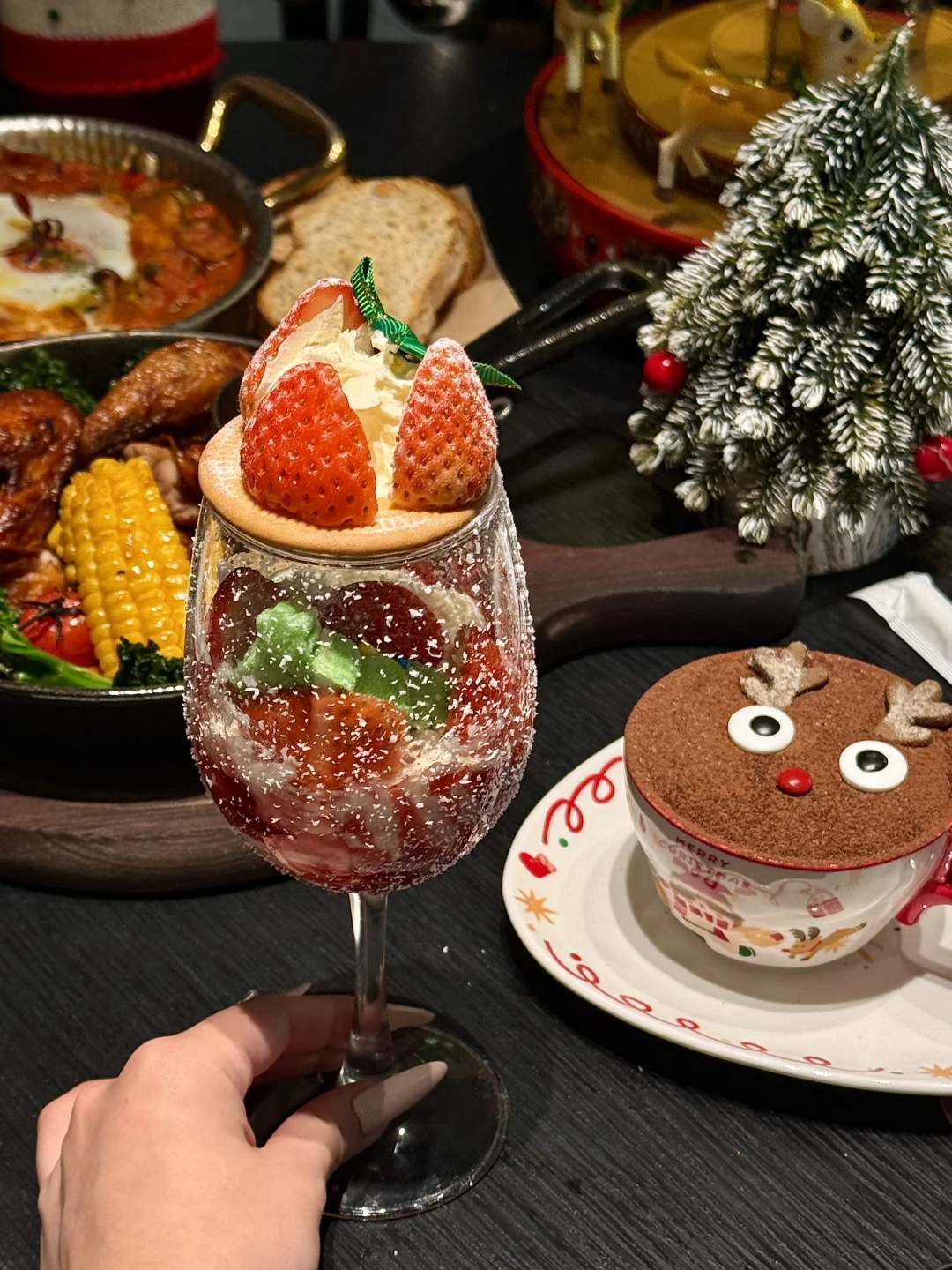 杭州西湖边!好美啊!角角落落都很有氛围🎄 圣诞限定摩卡、铃铛蛋糕、麋鹿提拉米苏…还有草莓芭菲杯🍓圣诞雪人酸奶碗也好可爱!! 和好朋友二人食也很有幸福感,吃烤鸡配热红酒🍷,平价西餐不贵而且好看又好吃!太适合Christmas dating了!