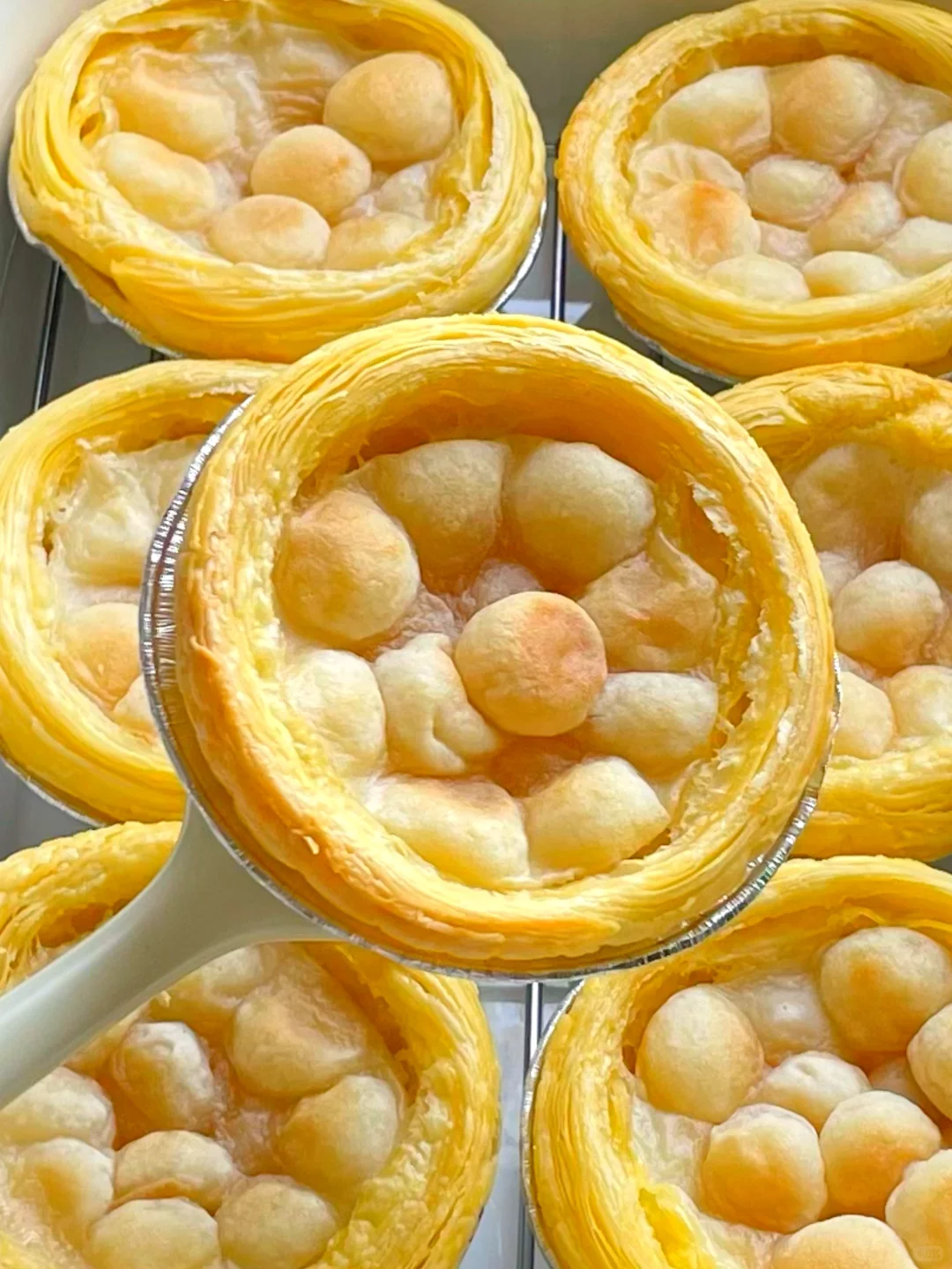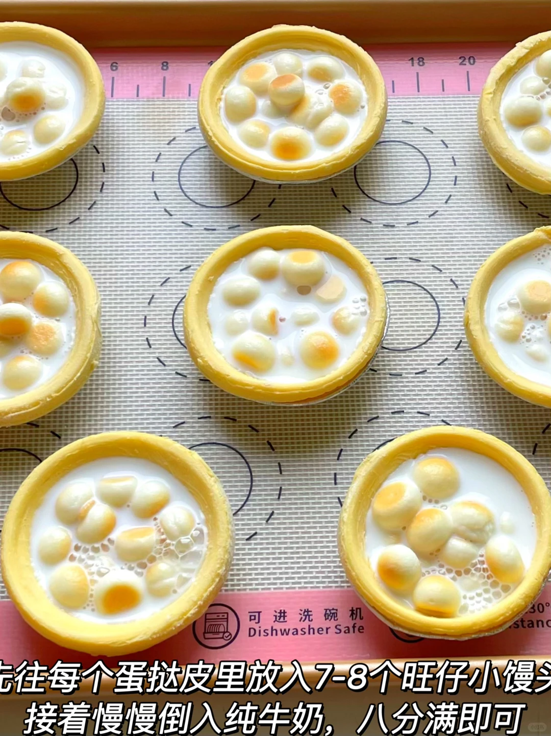 做菜我是认真的 🌈🌈 谁能拒绝一款奶香浓郁、外酥里糯的家常小甜点?不用复杂配料,不用专业手法,3种食材+20分钟,就能在自家小厨房解锁「小馒头麻薯蛋挞」,既有蛋挞的嫩滑醇香,又有旺仔小馒头的软糯惊喜,甜而不齁,不管是早餐、下午茶还是哄娃小零食,都是不错的选择。