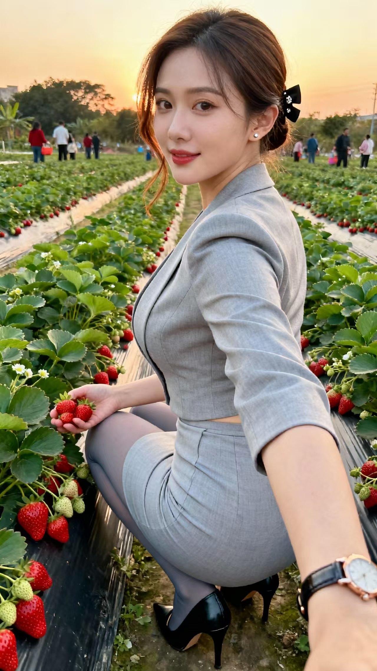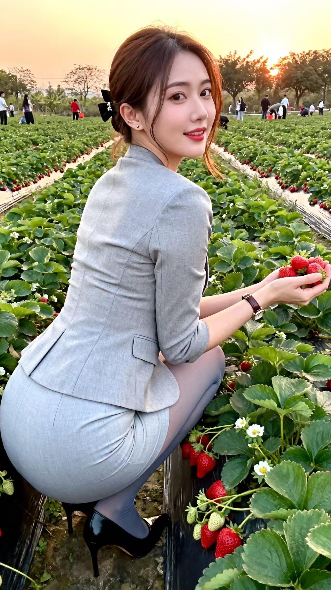 今天去摘草莓,被朋友偷拍说像油画里的少妇😂连晚霞都格外给面子,在我头顶停了十