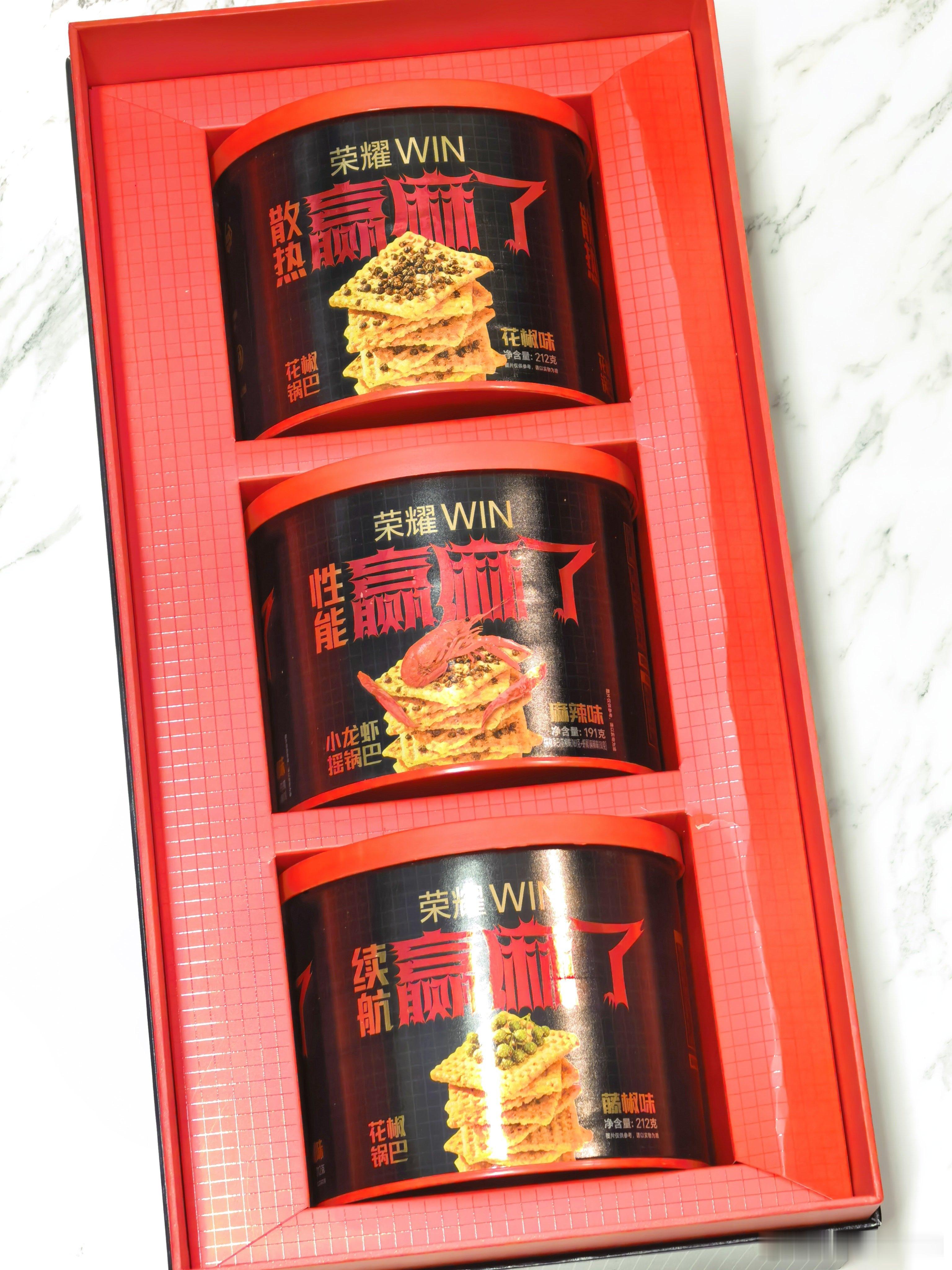 好家伙,收到荣耀WIN赢麻了礼盒,打开竟然是三种口味的麻辣锅巴,散热、性能、续