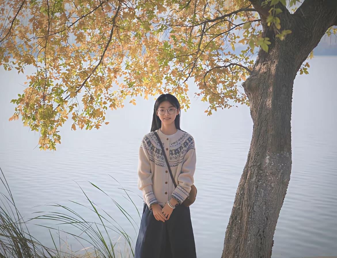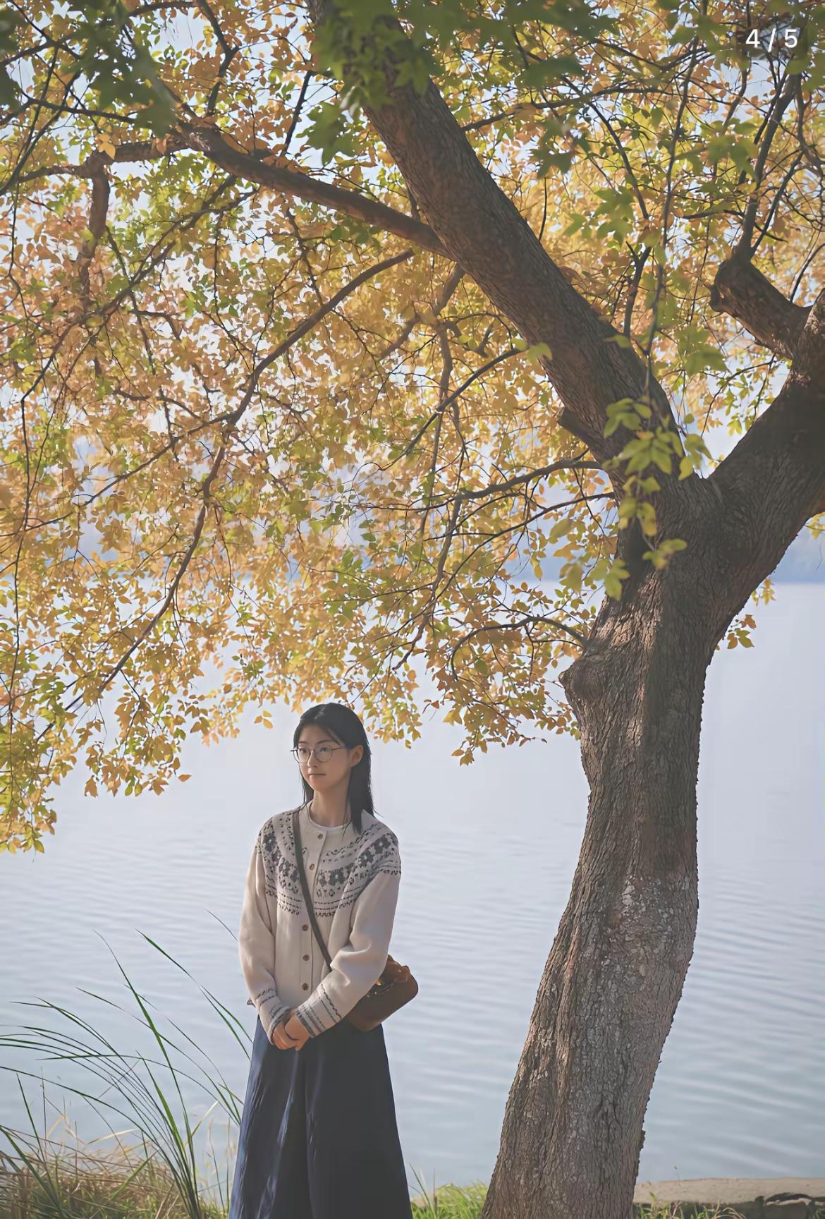优雅气质,浅驼色毛衣搭配长裙,简约时尚。
