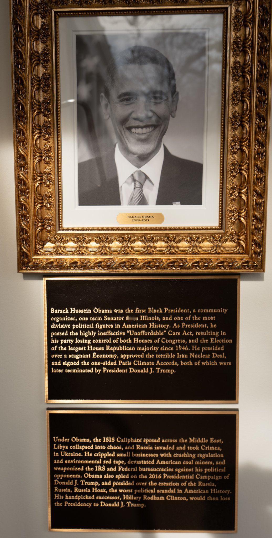 ☢️【特朗普竟然把对奥巴马的人身攻击挂在白宫墙上:美国真的政变了!】 现在,挂在白宫墙上的奥巴马照片下方增加了如下用词激烈的说明文字——代表了现任总统特朗普对这位前任总统的批评和攻击: 🔻2009-2017,巴拉克·奥巴马。巴拉克·侯赛因·奥巴马是美国首位黑人总统,曾是一名社区组织者,伊利诺伊州的一届参议员,也是美国历史上最具争议的政治人物之一。 🔻担任总统期间,他通过了效率低下的《平价医疗法案》,导致其所在的政党失去了对国会两院的控制权,并促成了自1946年以来共和党在众议院获得的最大多数席位。 🔻他执政期间经济停滞不前,批准了糟糕的伊朗核协议,并签署了片面的《巴黎气候协定》,这两项协议后来都被唐纳德·J·川普总统终止。 🔻在奥巴马执政期间,ISIS“伊斯兰国”在中东地区扩张,利比亚陷入了混乱,俄罗斯入侵并占领了乌克兰的克里米亚。 🔻他以严苛的监管和繁琐的环境法规扼杀了小型企业,摧毁了美国煤矿业,并利用美国国税局和联邦官僚机构打击政治对手。 🔻奥巴马还监视了唐纳德·J·特朗普2016年的总统竞选活动,并主导炮制了“通俄门”骗局,这是美国历史上最严重的政治丑闻。 🔻他亲自挑选的接班人希拉里·罗德姆·克林顿最终输给了唐纳德·J·特朗普,未能当选总统。