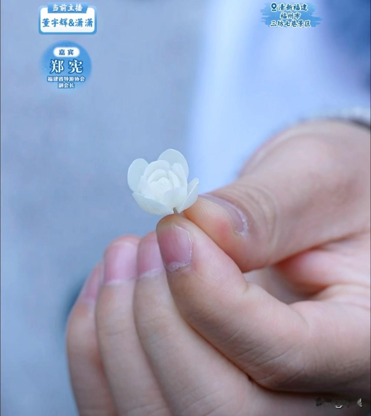 你以为董宇辉拿的是肉骨头吗? no no no !这其实是用寿山石雕刻的 名为“骨肉相连”,寓意湾湾 是祖国不可分割的一部分 我们在屏幕前看的都惊呆了 因为实在太逼真 那鸭子身上连鸡皮疙瘩都有[笑哭] 还有雕刻的茉莉花 上面还有小虫子 这是董宇辉福建行第二天 在福州三坊七巷景区 当地特别安排的非遗工艺展示 真的是巧夺天工 后面还展示了很多 每一件都美轮美奂 完全都是精美的工艺品 谁能想到这是在石头上雕出来的 跟着董宇辉阅山河真是大开眼界