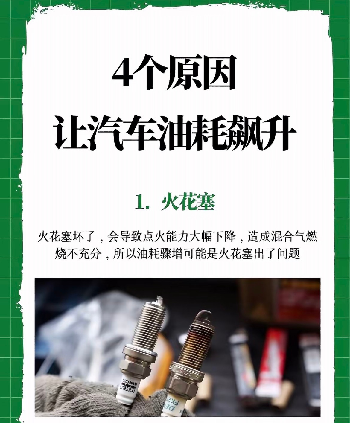 📢宝子注意!汽车油耗突然飙升?多半是这4点!1️⃣ 火花塞拉胯火花塞坏了点火能力直接下降,混合气燃烧不充分,油钱哗哗流走!2️⃣ 积碳找上门发动机、喷油嘴、节气门这些地方积碳多了,燃烧效率直线下滑,油耗想不高都难。3️⃣ 轮胎“没气”了胎压过低会让轮胎和路面摩擦力变大,踩油门更费油,记得定期检查胎压呀~4️⃣ 驾驶习惯太“猛”猛踩油门+急刹车,不仅伤车还超费油,温柔开车能省不少钱!我与汽车的日常大v聊车