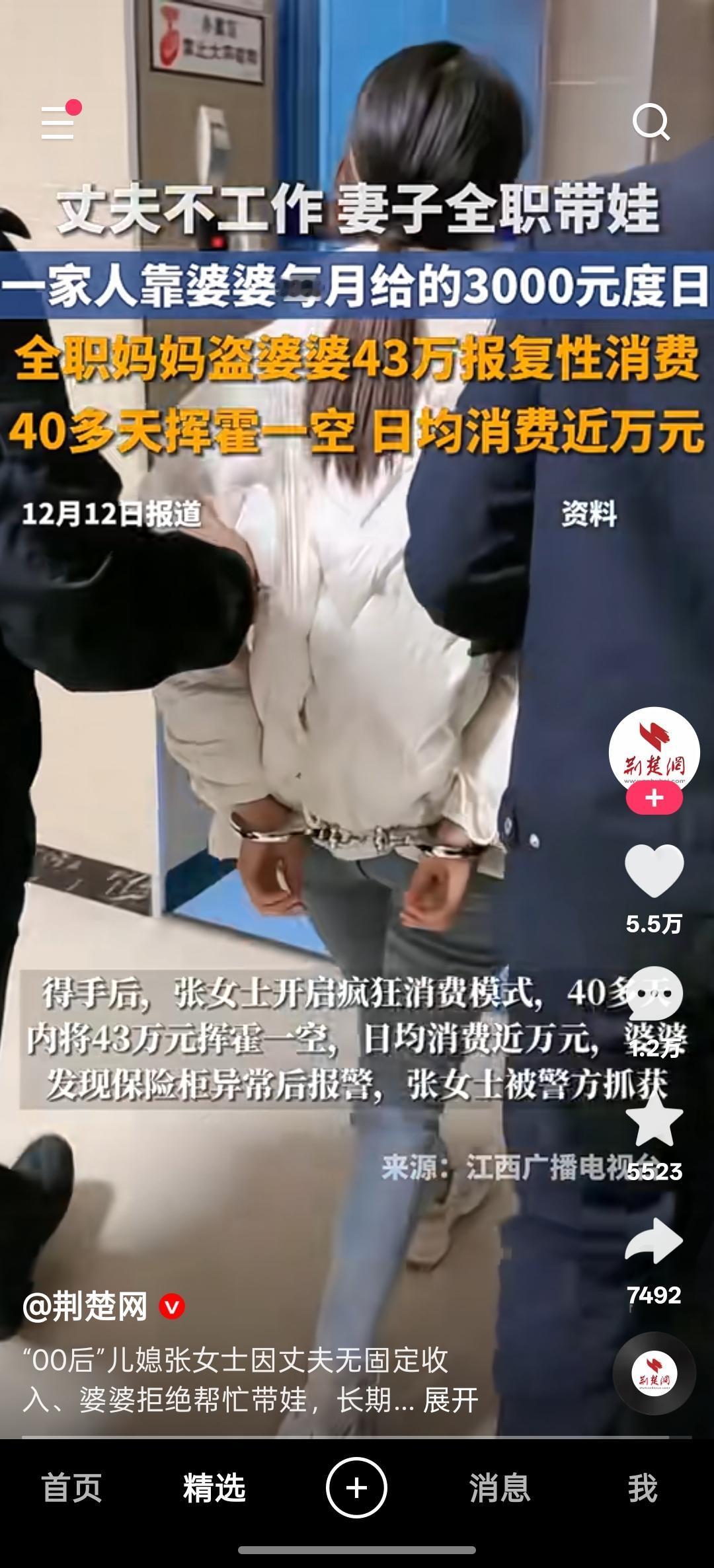 看清楚,不是婆婆报警抓她,是报了警以后警察抓的她,婆婆一开始都可能以为是别的小偷。再说这媳妇儿也不是啥善茬吧,第一,她偷盗,不管偷谁的就是偷了;第二,家庭条件一般,40多万说挥霍就挥霍,这也不是过日子的人。我要是她婆婆,我有钱都防着她,人品就有很大的问题。