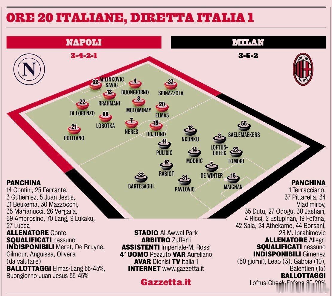 米兰体育报对超级杯第一场半决赛的首发预测如下国际米兰热点解读大家觉得谁能晋级?