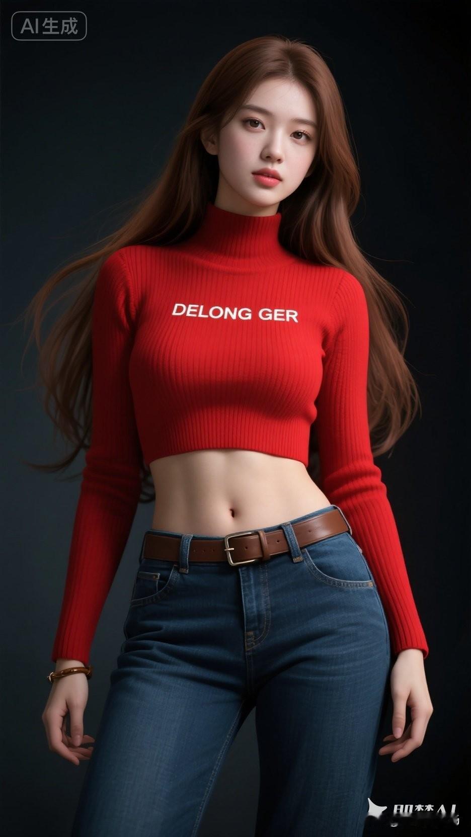 红色毛衣搭配牛仔裤,简约又时尚,自信满满!💃🏻👗👖