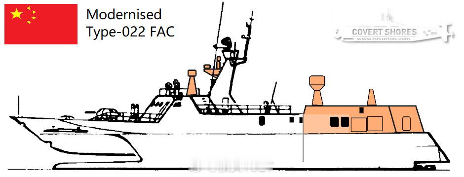 萨顿对22艇改装的看法:这两艘舰艇原有的独特导弹发射箱已被移除,取而代之的是一个