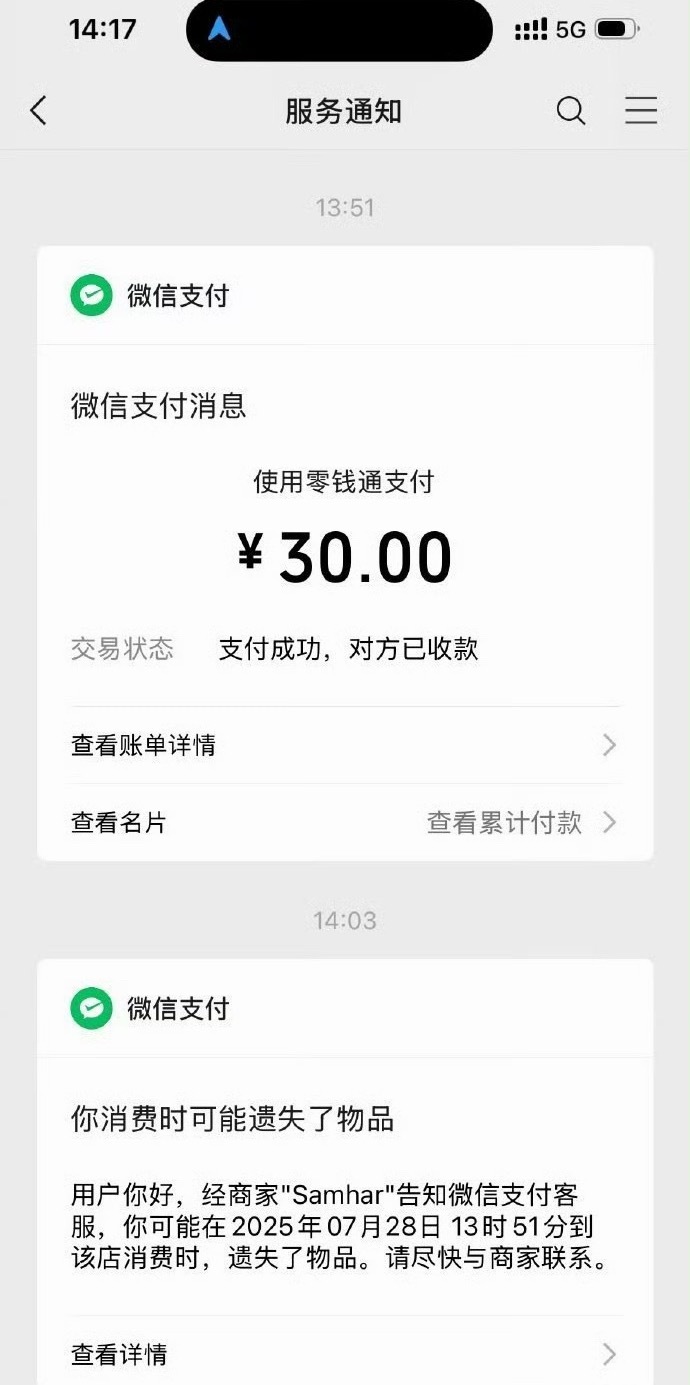 第一次知道微信支付还有这功能怎么感觉别人的微信和我的微信不是一个年代的,我还傻傻的停留在扫码支付。没想到已经可以商家留言遗失信息了,再也不用傻傻的挨个地方找了