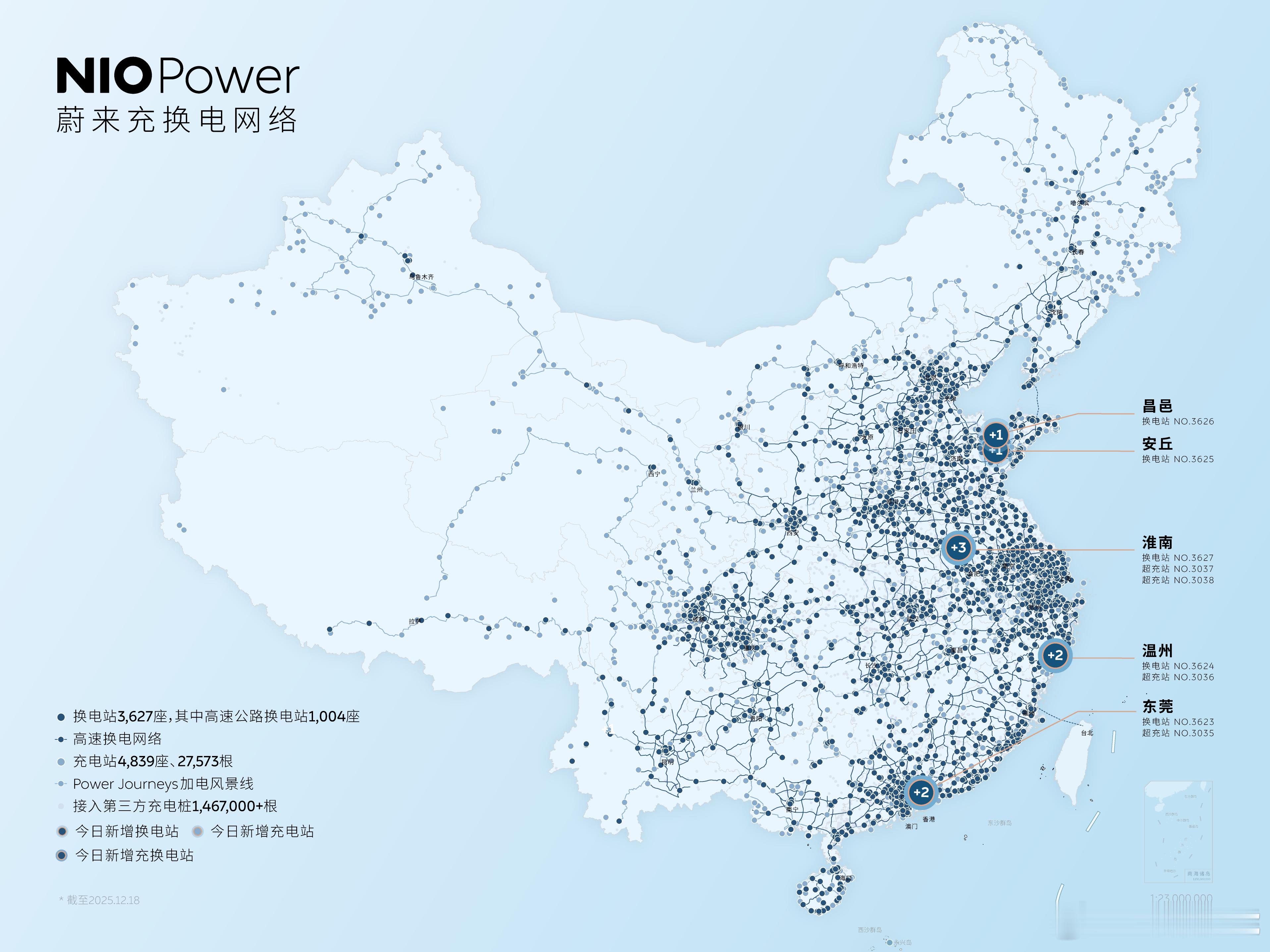 12月18日 NIO Power 9站上线NO.3623 蔚来换电站 | 东莞塘厦大道NO.3624 蔚来换电站 | 温州白象后大桥NO.3625 蔚来换电站 | 潍坊安丘颐高广场NO.3626 蔚来换电站 | 潍坊昌邑城西汽车城NO.3627 蔚来换电站 | 淮南潘集淮畔交通中心NO.3035 蔚来超充站 | 东莞塘厦大道NO.3036 蔚来超充站 | 温州白象后大桥NO.3037 蔚来超充站 | 淮南潘集淮畔交通中心NO.3038 蔚来超充站 | 淮南楚韵江南持续布局-让加电比加油更方便