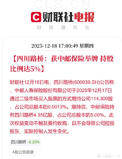 中邮保险举牌四川路桥