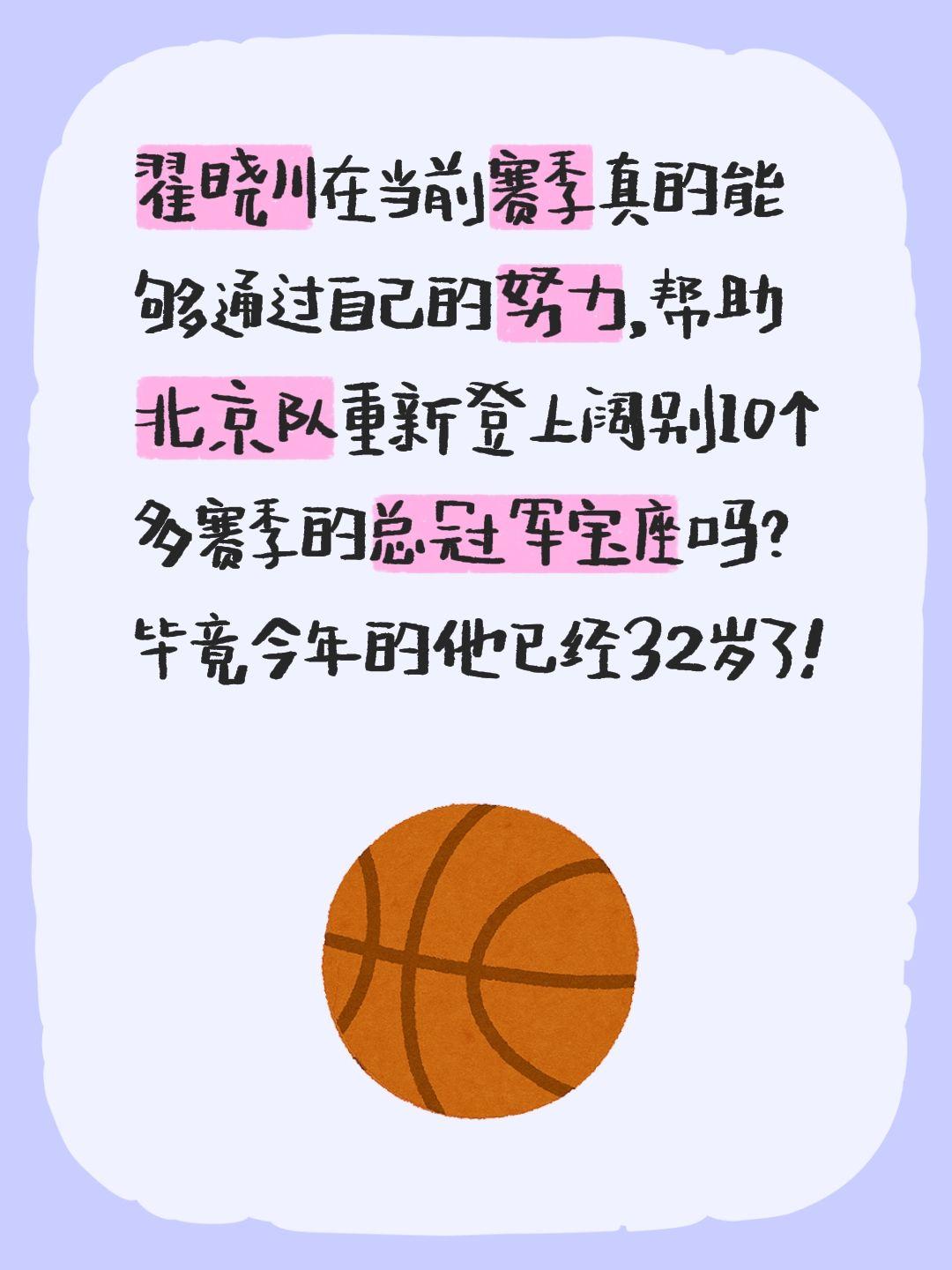 翟晓川在当前赛季真的能够通过自己的努力,帮助北京队重新登上阔别10个多赛季的总冠军宝座吗?毕竟今年的他已经32岁了!