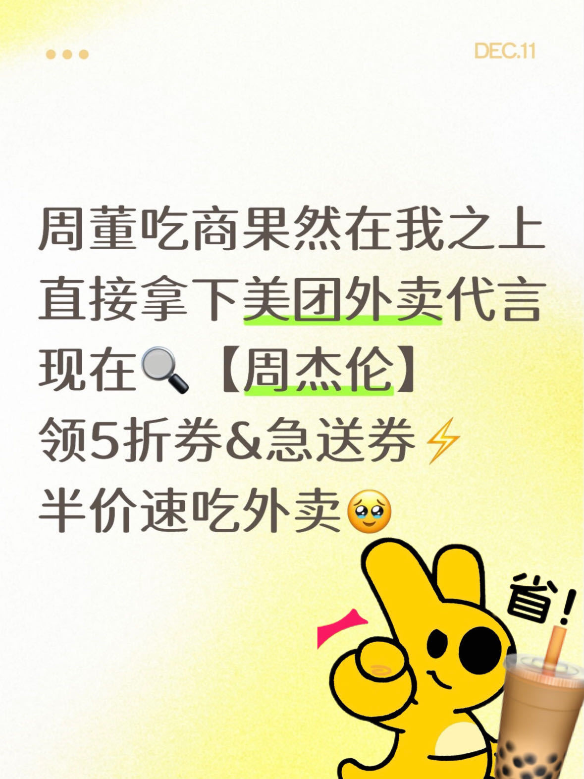周杰伦在周杰伦模仿大赛获得第二名周杰伦代言美团外卖模仿大赛里周董屈居第二?全网“分伦”是挺厉害,但论宠粉,他从没输过!上美团外卖搜【周杰伦】,1对1急送和5折券赶紧领,美味咻地就到,这波福利,不愧是他~