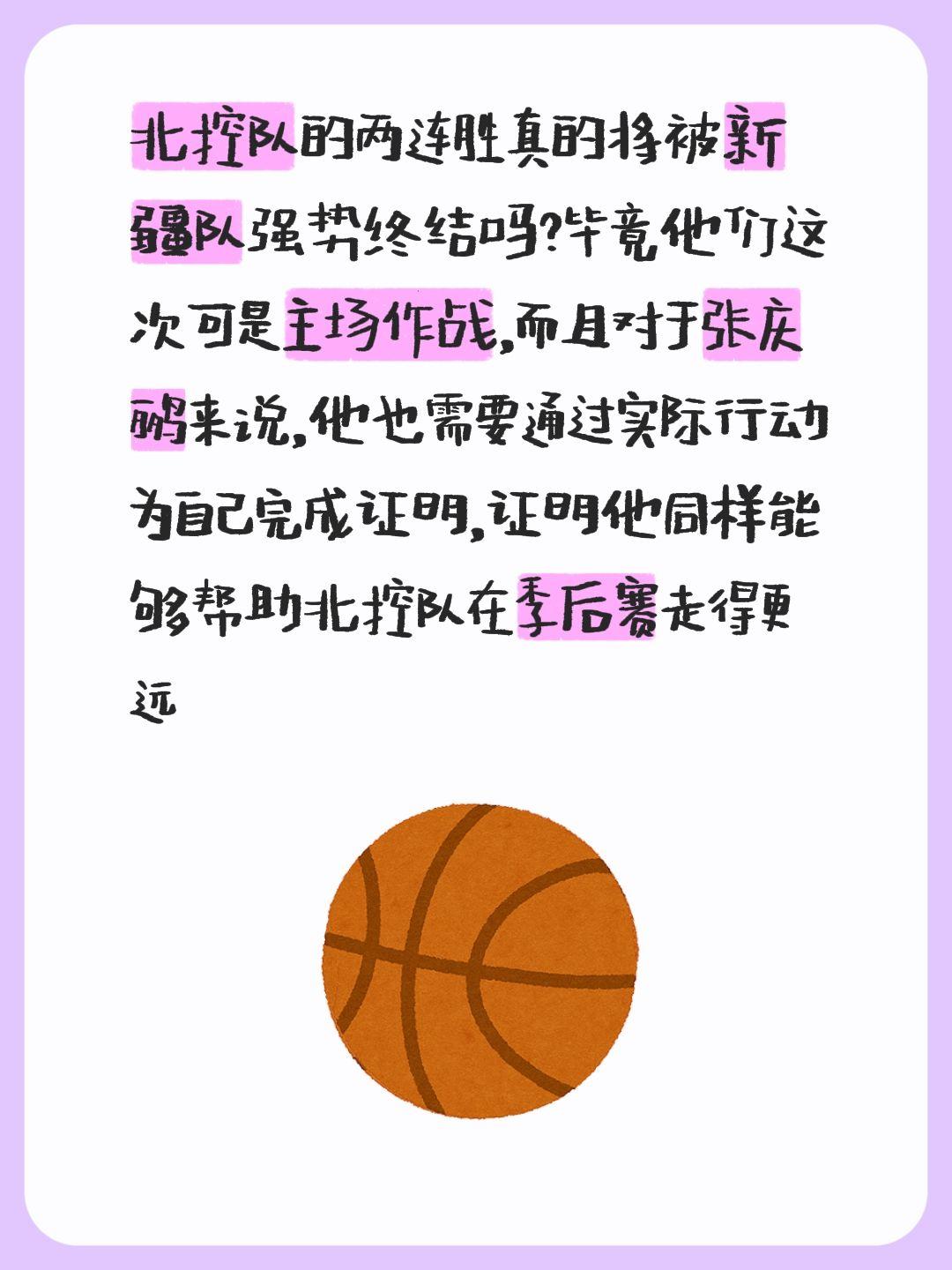 北控队的两连胜真的将被新疆队强势终结吗?毕竟他们这次可是主场作战,而且对于张庆鹏来说,他也需要通过实际行动为自己完成证明,证明他同样能够帮助北控队在季后赛走得更远