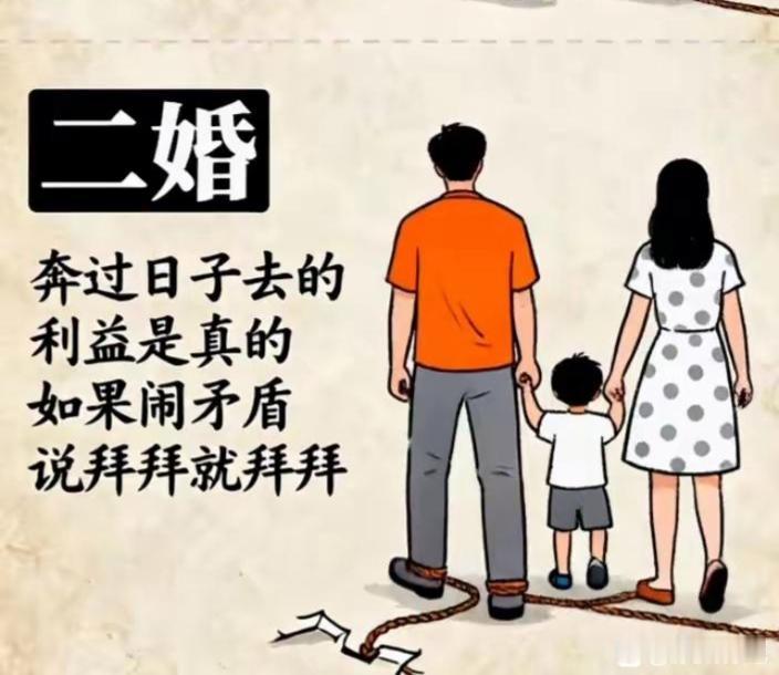 看懂的都是高手 头婚:奔爱情去的, 感情是真的, 即使闹矛盾也不会轻易离婚。 二婚:奔过日子去的, 利益是真的, 如果闹矛盾, 说拜拜就拜拜。 实际几婚不是主要的, 重要是合不合得来, 人都是善变的。 大部分人都是奔着过日子的。 说一婚好还有那么多离婚? 家家有本难念的经, 感情本身就是身不由己, 各有各的苦, 只是大家都在努力的活着。 真正过的好的又有多少? 看表面大家过的还行, 问题是谁家锅底没有灰, 只不过厚薄而已。 婚姻是一种责任与担当! 相互尊重包容才更长久! 婚姻二婚也幸福
