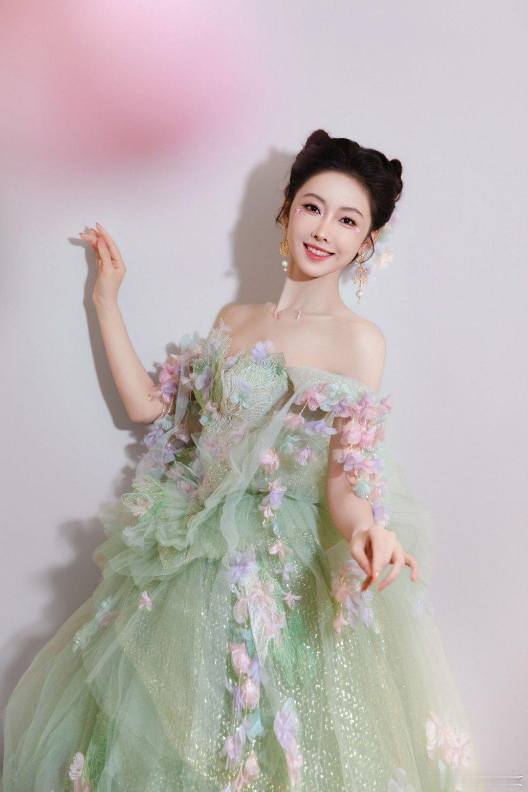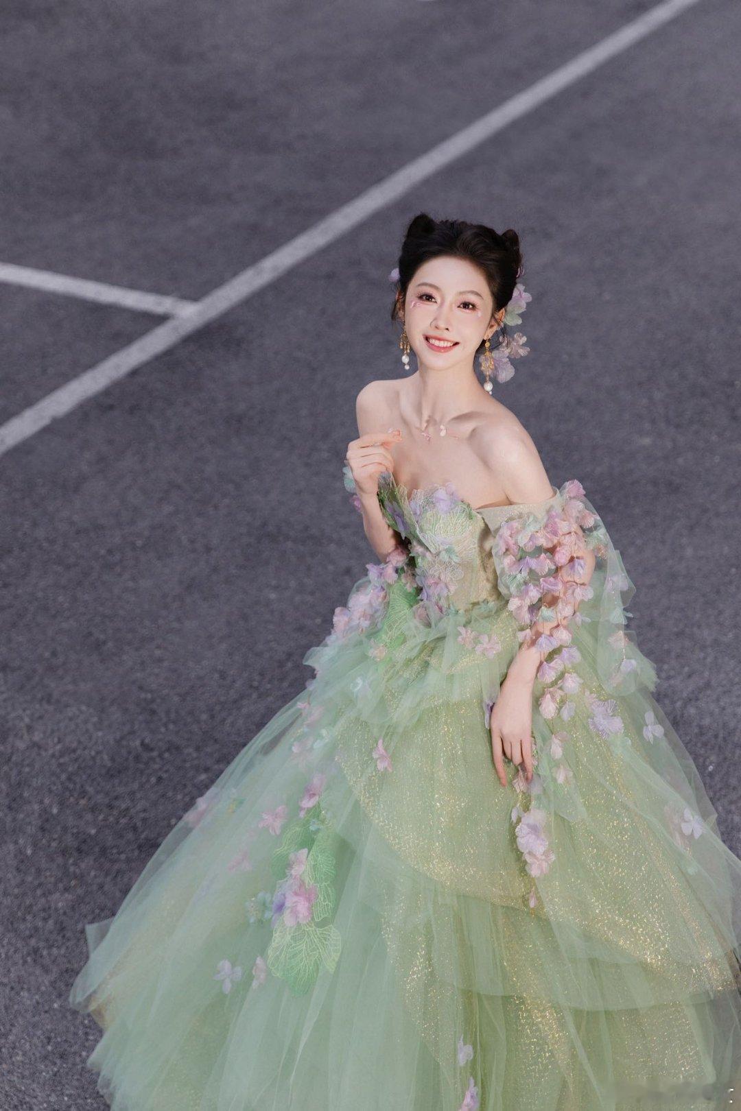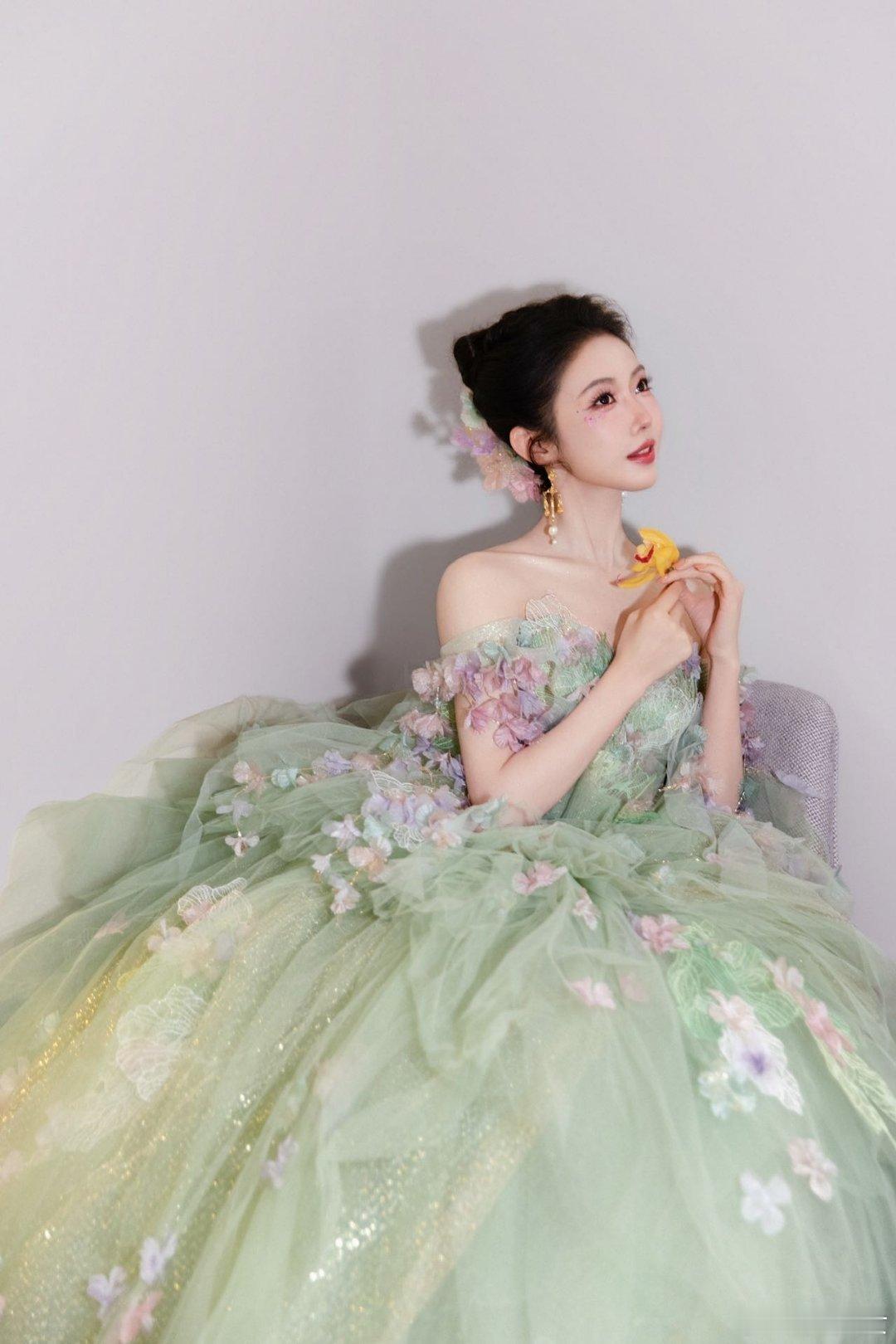 宣璐化身的绿野精灵实在太迷人,裙摆花朵簇拥,好似将一整个春天都留住。灵 动 清新的气质扑面而来,美得如同从童话世界里走出的仙子,每一个姿态都满是梦幻感,让人一眼心动。