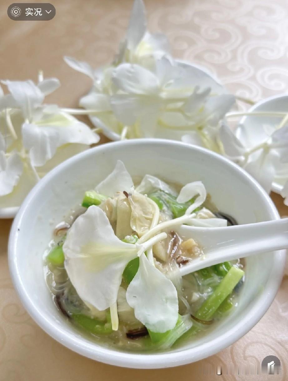 广东这道生吞姜花的菜,本地人看了都懵,敢尝的都是狠人! 在广东混迹十几年,自认吃遍各路奇葩菜式,直到今天被朋友拉去吃这道“姜花羹”,直接刷新认知! 桌前摆着整盘洁白的姜花,花瓣娇嫩得像刚摘的茉莉,谁能想到下一秒就被直接舀进热羹里生涮?入口先是姜花独特的清苦香,混着羹里的鲜爽,口感滑溜溜的,怪却上头。 老板说这是当地老饕才懂的吃法,姜花清热还能提鲜,搭配海鲜羹是一绝。同行的广东朋友都直呼第一次见,更别说我们这些外乡人,直接看呆了眼。 原来广东的“食花文化”藏得这么深,连姜花都能端上餐桌当菜吃。不过这生吞姜花的操作,有人觉得是舌尖奇遇,有人却直呼接受无能,你们敢试试这种生涮姜花的吃法吗?