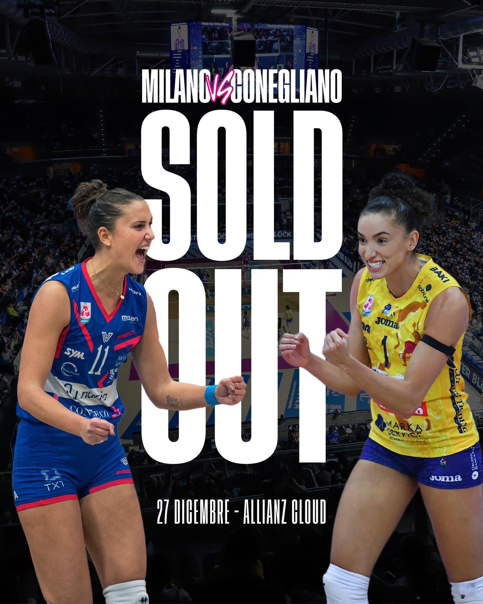 国际排坛动态朱婷北京时间12月28日01:00 意甲女排联赛重头戏,米兰队 vs 科内利亚诺队的比赛,5296张门票已经全部售罄 米兰女排