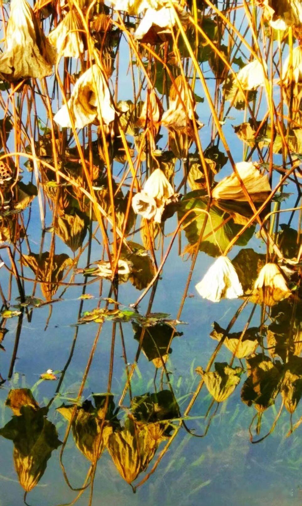 清江引·荷殇 昔时翠盖连天绿, 此际枯荷郁。 待逢春雨临, 再赏清波馥。 藕花韵香依旧馥。