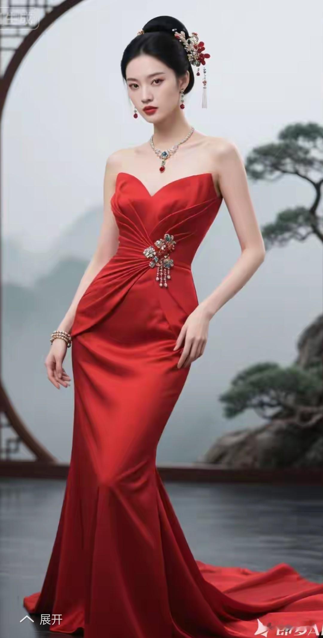 一抹朱红,国色天香 冰肌玉虎,名眸皓齿 出水芙蓉,秀色可餐 花容月貌,百媚千娇 纤腰楚楚随风摆, 丽影翩翩入梦来。