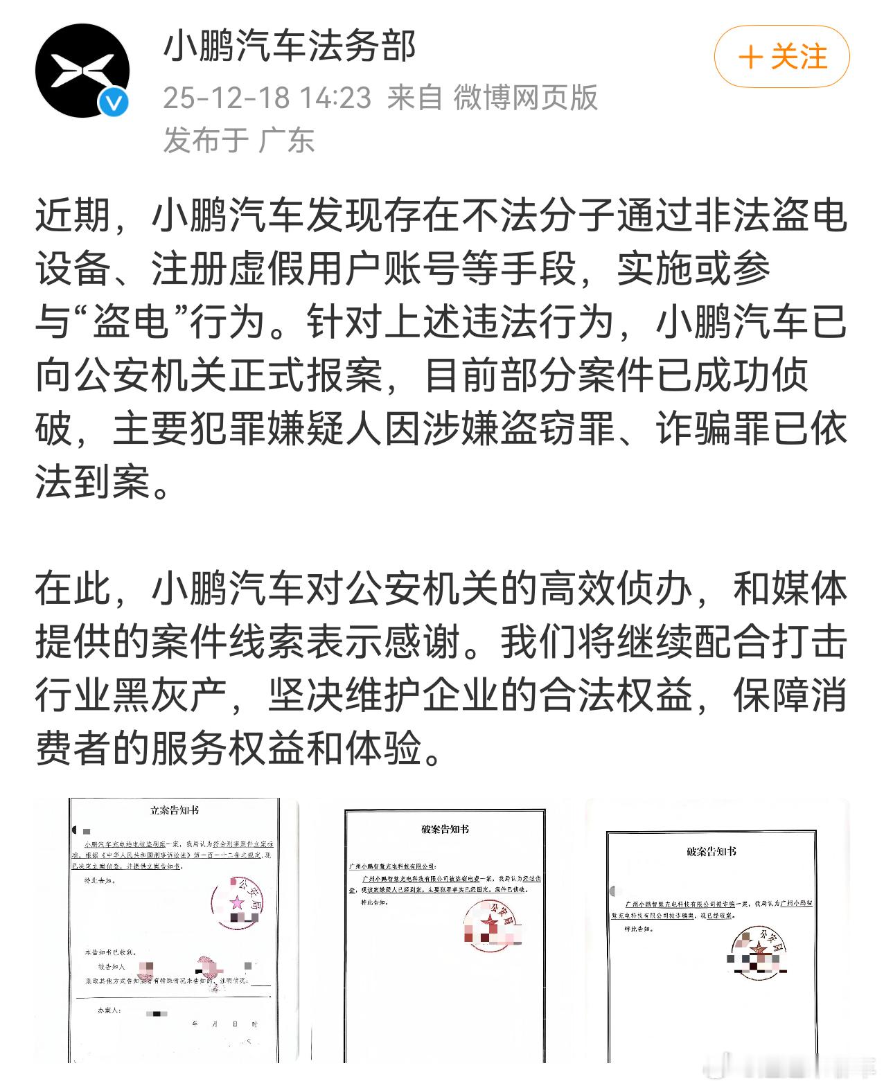 小鹏汽车盗电案告破还有盗电的?不过小鹏出手也太迅速了,还不知道事情经过,就已经结束了