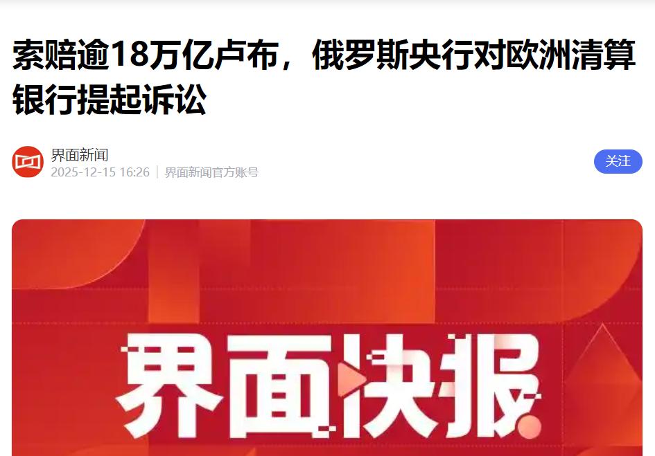 欧洲傻眼了!你敢冻我 2290 亿?好!我直接 “合法抄家” 2300亿。 欧洲这波操作真是搬起石头砸自己的脚,当初意气风发冻结俄罗斯 2290 亿资产时有多嚣张,现在面对俄罗斯的反制就有多狼狈。 当地时间 12 月 15 日,俄罗斯中央银行直接把欧洲清算银行告上了莫斯科市仲裁法院,索赔金额高达 18.1 万亿卢布,换算成人民币足足有 1.6 万亿,这可比欧洲冻结的资产多了不止一点,堪称 “合法抄家” 的典范。 这事得从欧洲当初的冲动决策说起。之前俄乌冲突升级后,欧洲跟着美国一起对俄加码制裁,脑子一热就把俄罗斯海外的 2290 亿资产给冻结了。 当时欧洲还觉得自己占了大便宜,以为能靠着这笔资产拿捏俄罗斯的经济命脉,让俄罗斯在国际上寸步难行。 可他们万万没想到,俄罗斯压根不吃这一套,反而直接拿起法律武器反击,这波反杀来得又快又狠。 俄罗斯央行可不是随便说说,这次起诉的理由相当充分。俄央行明确指出,欧洲清算银行未经允许就冻结俄方资产,已经构成了非法行为,给俄罗斯造成了实打实的直接损失。 要知道,这些被冻结的资产里,有不少是俄罗斯用于国际贸易结算、外汇储备调度的关键资金,欧洲一声不吭就给冻了,直接打乱了俄罗斯的经济部署,带来的连锁反应可不小。 欧洲现在是彻底傻眼了,他们当初冻结资产的时候,压根没考虑过俄罗斯会有这么强硬的反制手段。 要知道 1.6 万亿人民币可不是小数目,欧洲清算银行作为欧洲金融市场的重要枢纽,就算家底厚实,也扛不住这么巨额的索赔。 更关键的是,这起诉讼一旦俄罗斯胜诉,不仅欧洲清算银行要大出血,整个欧洲的金融信誉都得跟着受损。 其实欧洲从一开始就打错了算盘,他们以为冻结资产是稳赚不赔的买卖,却忘了国际社会讲究的是公平正义,也忘了俄罗斯从来不是任人拿捏的软柿子。 之前欧洲跟着美国对俄搞了多轮制裁,从能源禁运到金融封锁,可结果呢?俄罗斯不仅没被打垮,反而在多个领域实现了突破,能源出口找到了新的买家,本币结算也越来越普及。 反观欧洲,制裁俄罗斯的苦果早就自己咽下去了。禁运导致欧洲天然气价格暴涨,不少工厂因为能源成本太高被迫停工,老百姓冬天取暖都成了难题。 现在又因为冻结俄罗斯资产引发了这起巨额索赔案,欧洲的金融市场更是人心惶惶。 这起案件也让国际社会看清了西方所谓的 “规则至上” 不过是个笑话,当规则符合他们利益的时候,就拿出来说事儿;当规则不符合他们利益的时候,就随意践踏。 欧洲冻结俄罗斯资产的时候,完全不顾国际法准则,现在俄罗斯通过法律途径维权,他们又开始慌了,这种双重标准的做法,只会让欧洲在国际上的信誉越来越差。 说到底,国家之间的交往讲究的是平等互利,动不动就搞制裁、冻结资产,最终只会搬起石头砸自己的脚。
