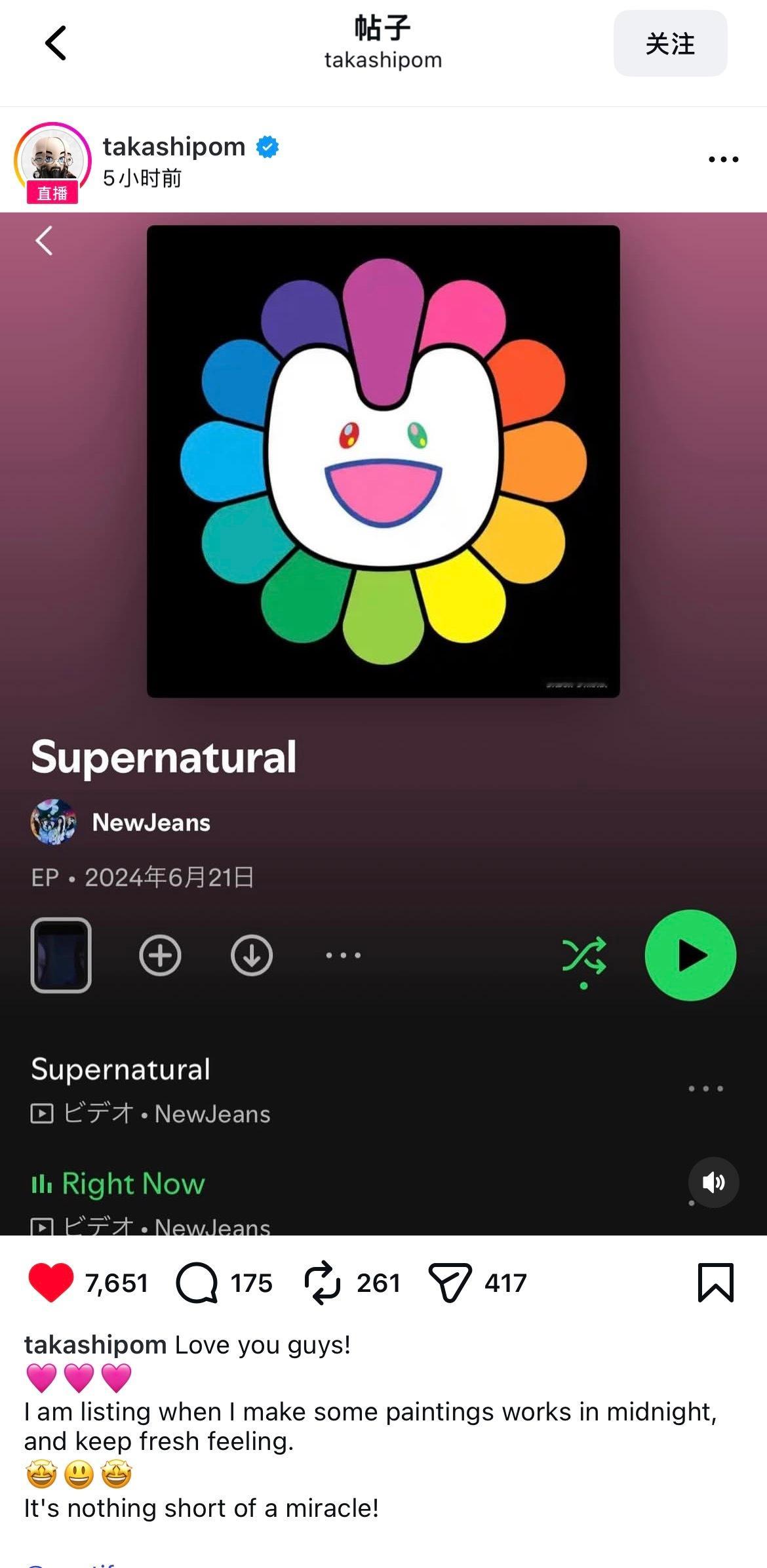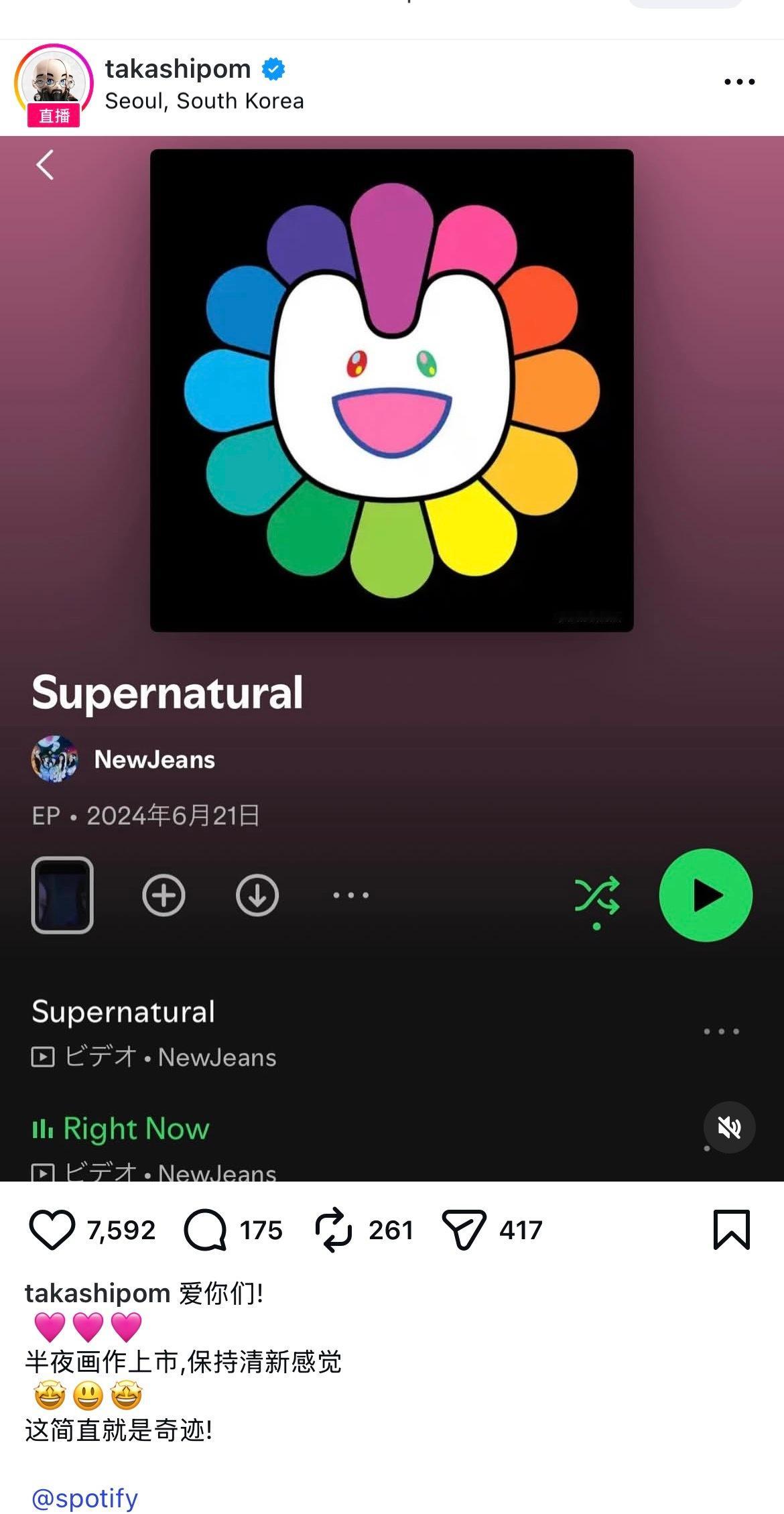 251219 takashipom ins更新村上隆再次表达了他对NewJeans的支持。