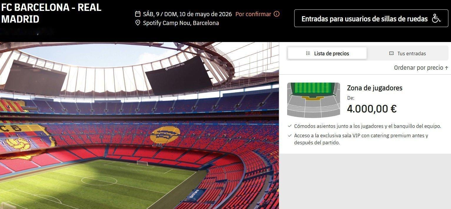 马卡报:巴萨已发售与皇家马德里国家德比的VIP门票,售价4000欧元。 票价是同类VIP票通常价格的四倍。 这些高级门票提供独特的体验,座位位于替补席和球员席旁边,还可以进入体育场的贵宾休息室,享受豪华的款待服务,包括赛前和赛后的餐饮。体育大赏巴萨国家德比
