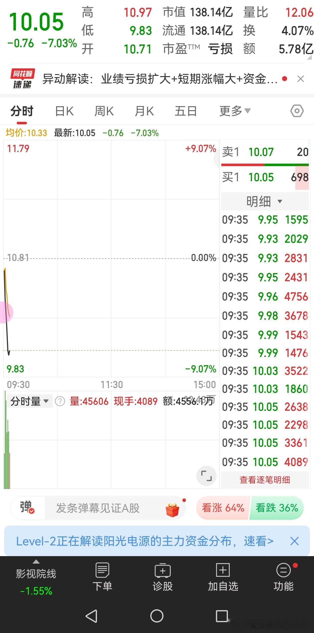 阿凡达3大跌7%,我看了影评,不太好 昨天有人涨停附近跑掉,是真运气好。