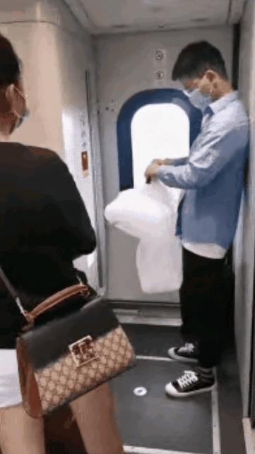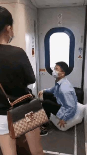 这是真有头脑啊!女子乘坐高铁买了无座票,上车后就站在车厢连接处。她看到旁边一个小